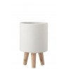 Cementový bílý květináč na dřevěných nožkách - Ø16*24,5 cm