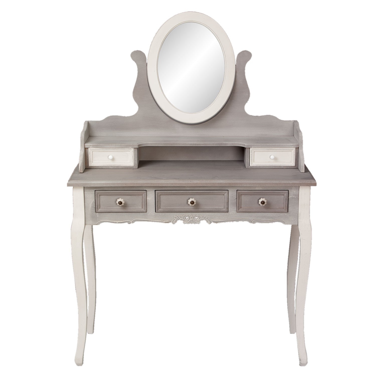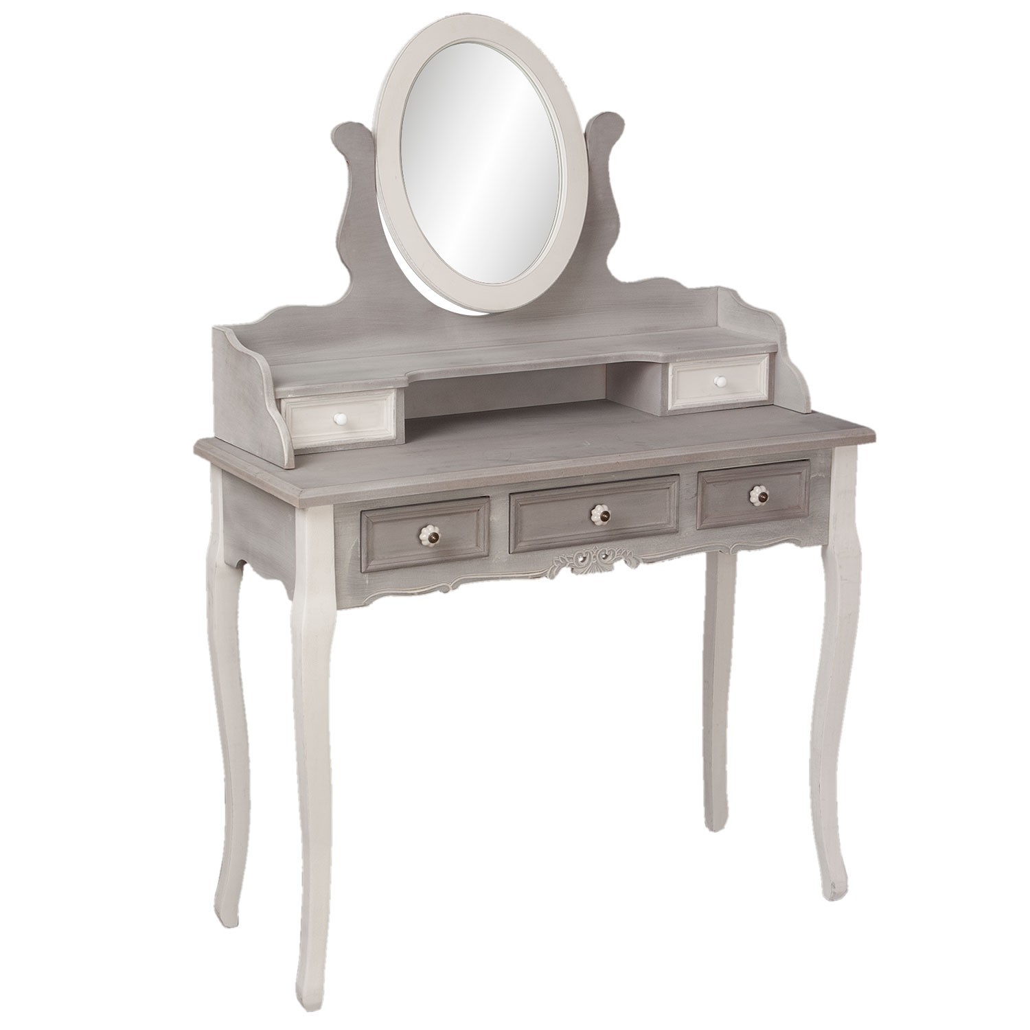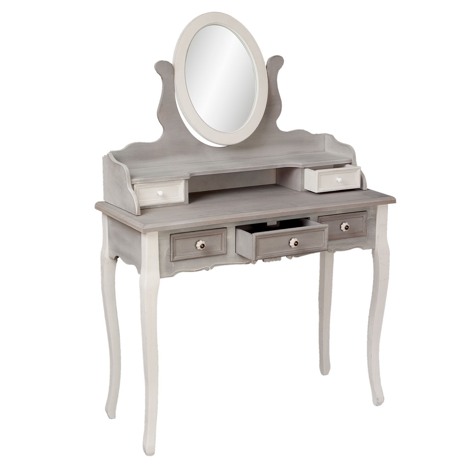 Krásná vintage toaletka se zrcadlem na vaše zkřášlující chvíle. Každá věc bude mít své místo ve svém šuplíčku. Každý šuplíček vysunete , když zatáhnete za kovovou úchytku.