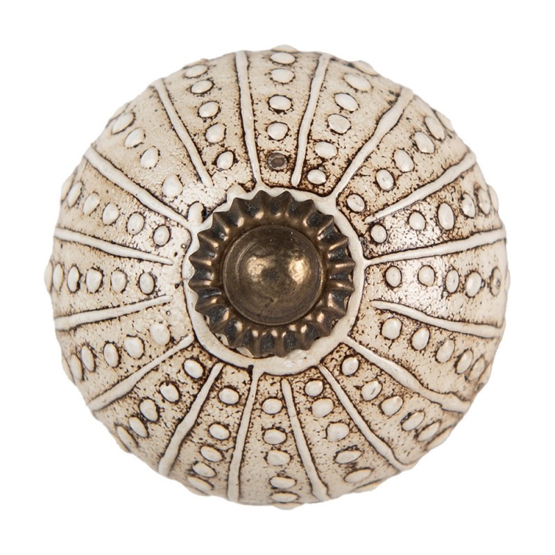 Krémová kulatá keramická úchytka s patinou - Ø 4 cm ,délka šroubu 4 cm