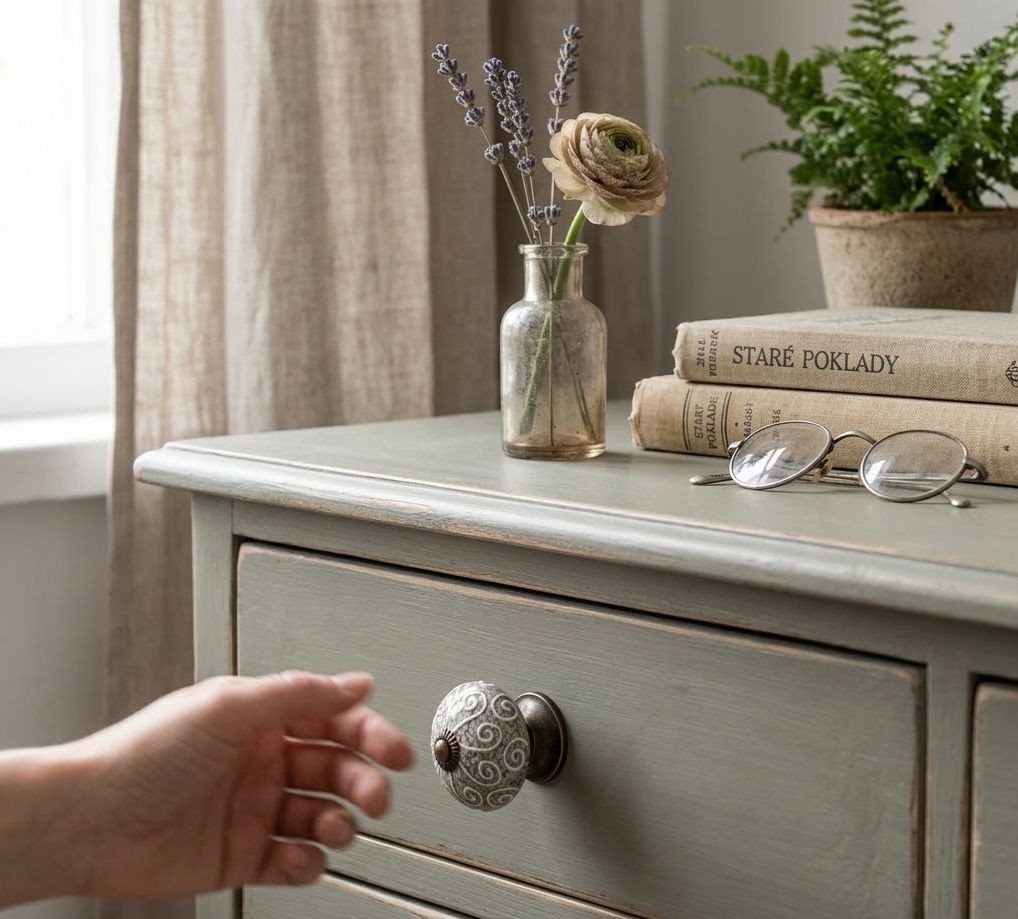 Při renovaci nábytku: Skvělá volba pro upcyklaci starších kousků, komod a nočních stolků, kterým dodá romantický a noblesní punc.