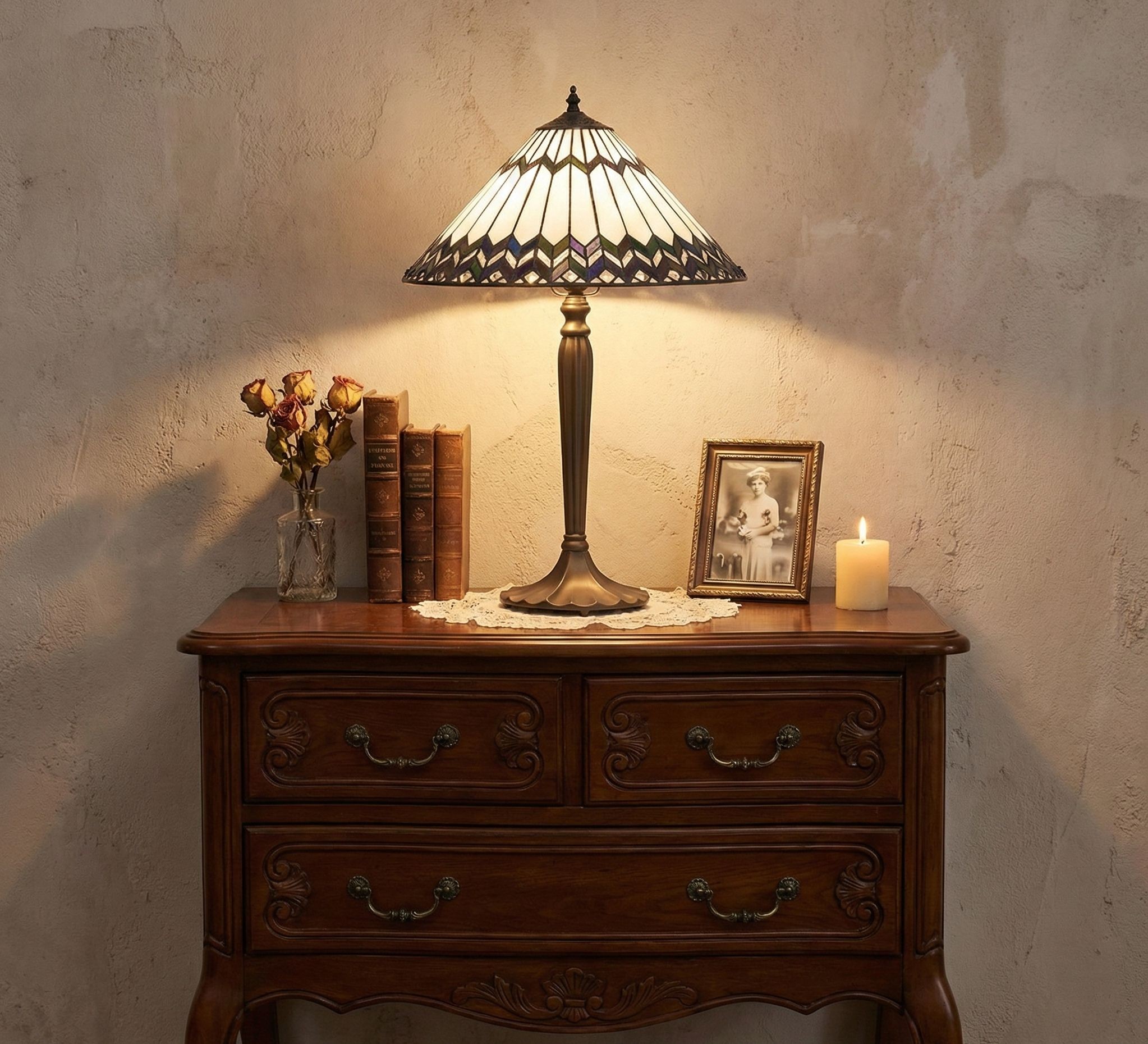 Popis Tiffany stolní lampa Femma - Ø 40*62 cm