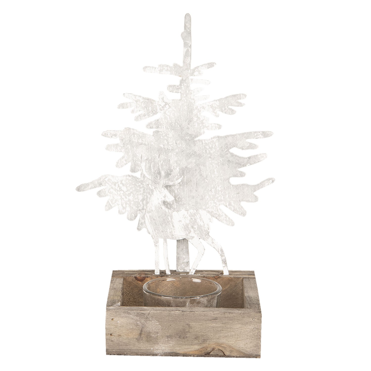 Stojan na čajovou svíčku s jelenem a stromem - 14*10*21 cm Clayre & Eef