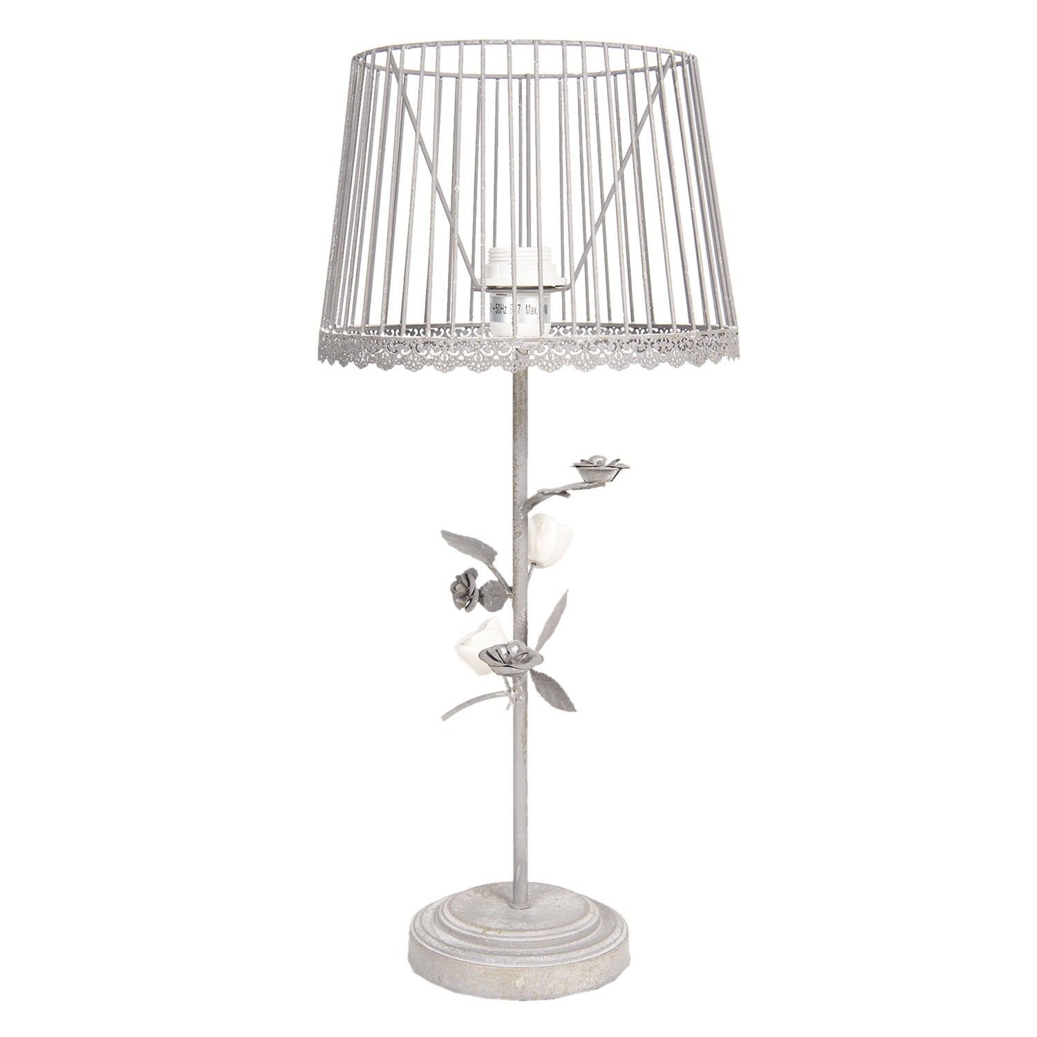 Šedá stolní lampa s patinou a růžičkami -Ø 20*48 cm Clayre & Eef