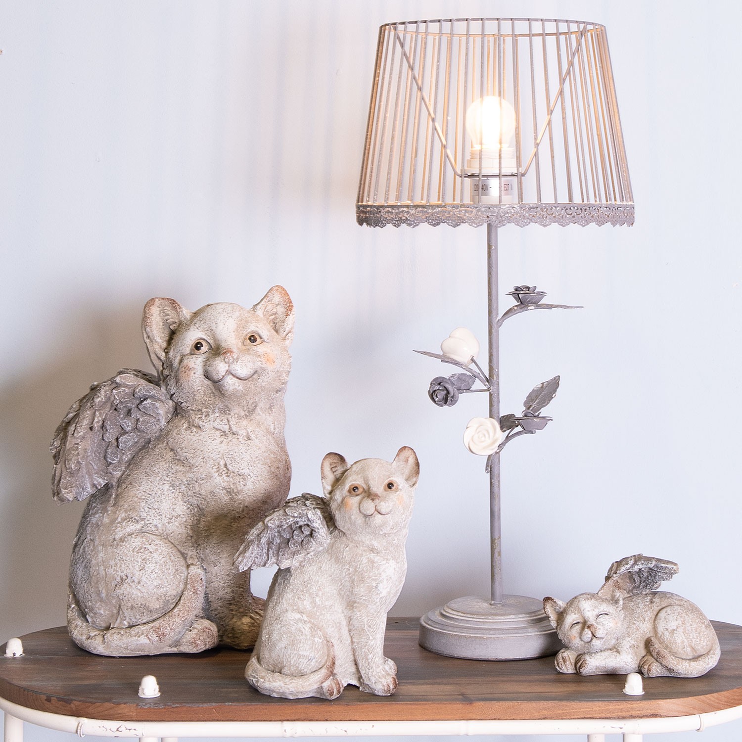 Šedá stolní lampa s patinou a růžičkami -Ø 20*48 cm