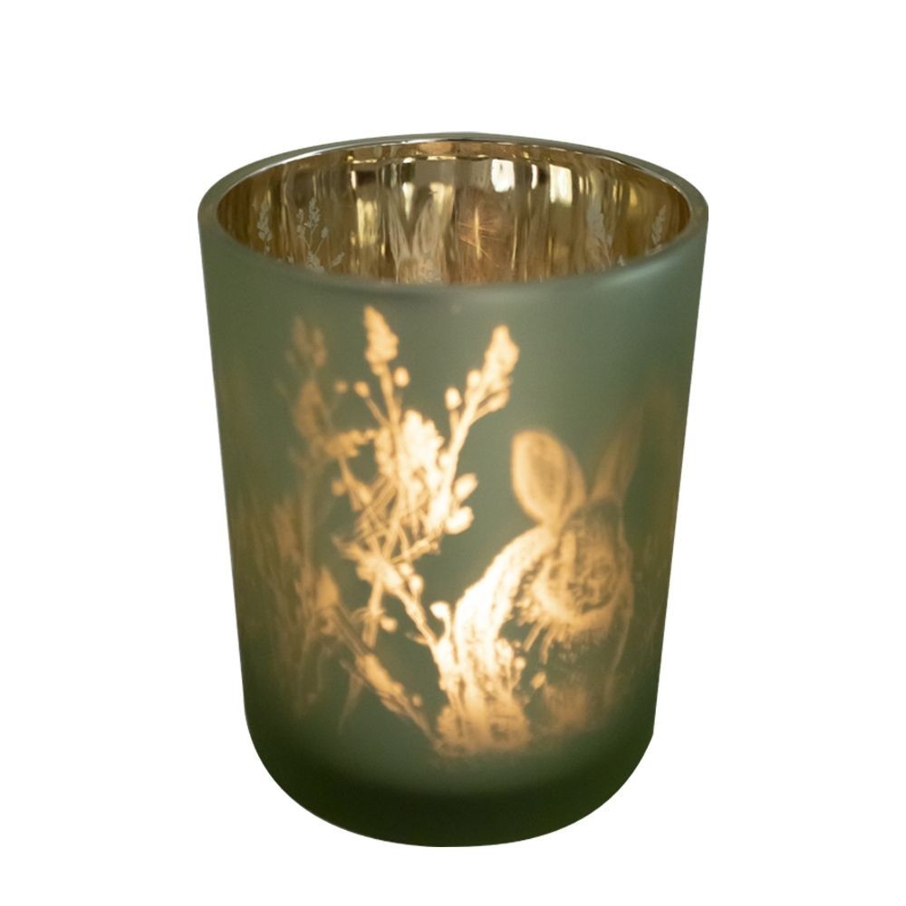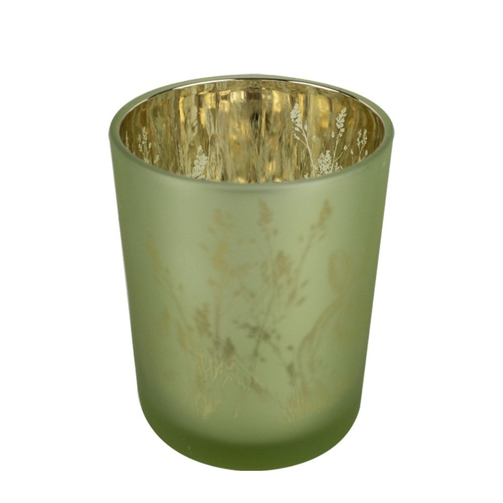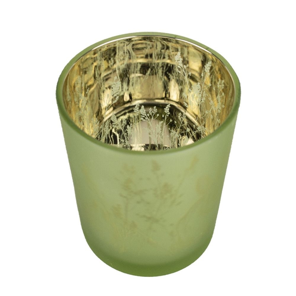 Zeleno zlatý skleněný svícen s trávou L - 10*10*12cm