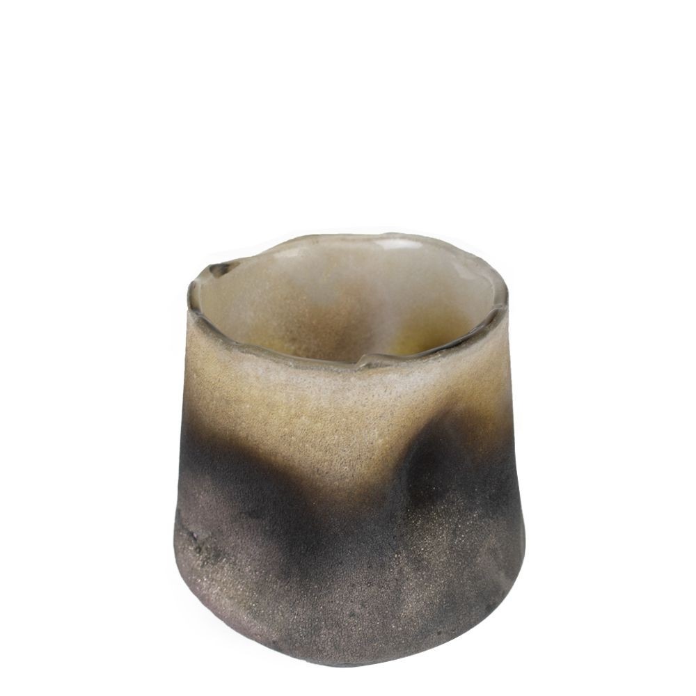 Hnědo béžový ručně foukaný svícen - 9,5*9,5*10,5cm