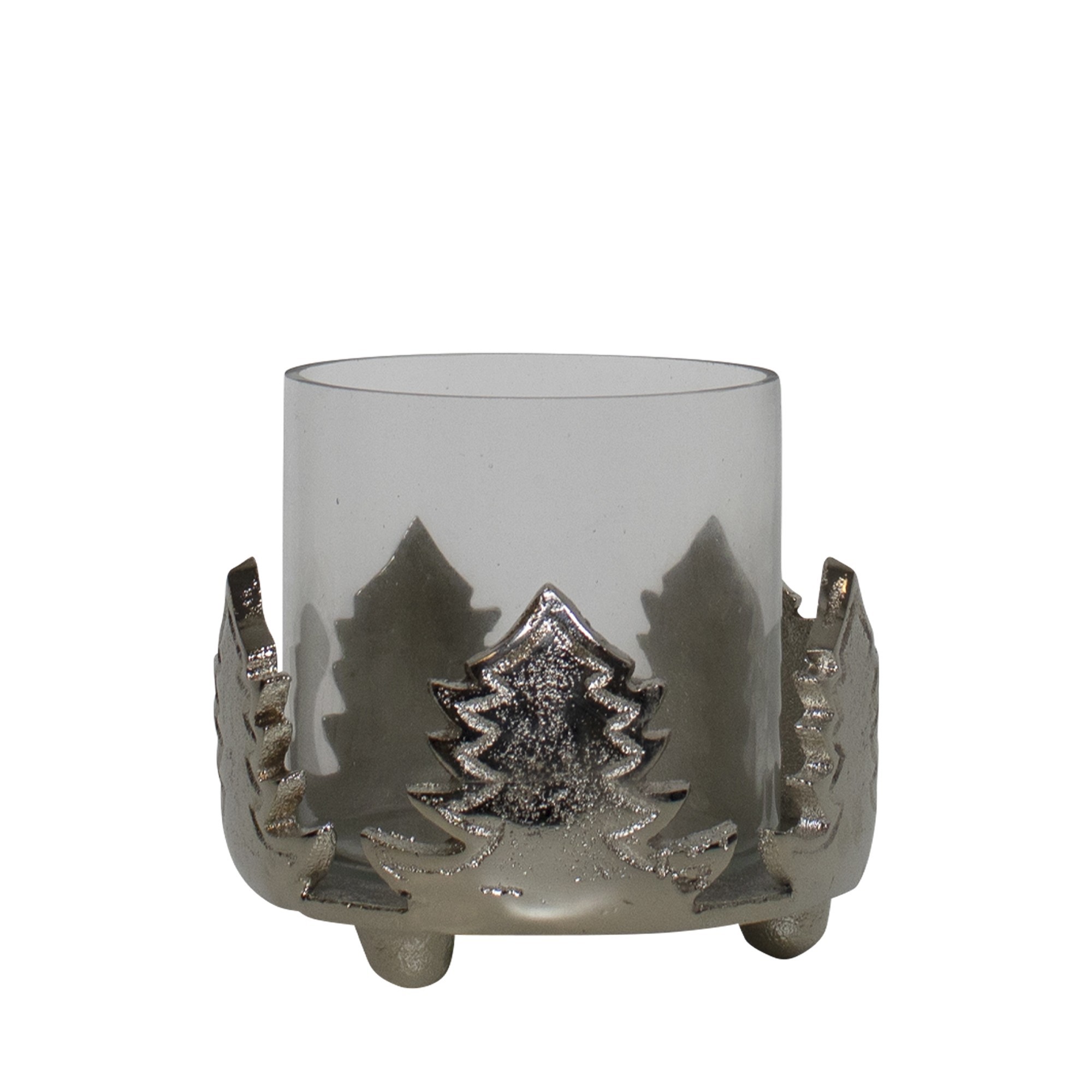 Svícen ze skla zdobený stříbrnými borovicemi - Ø 11,5*10cm