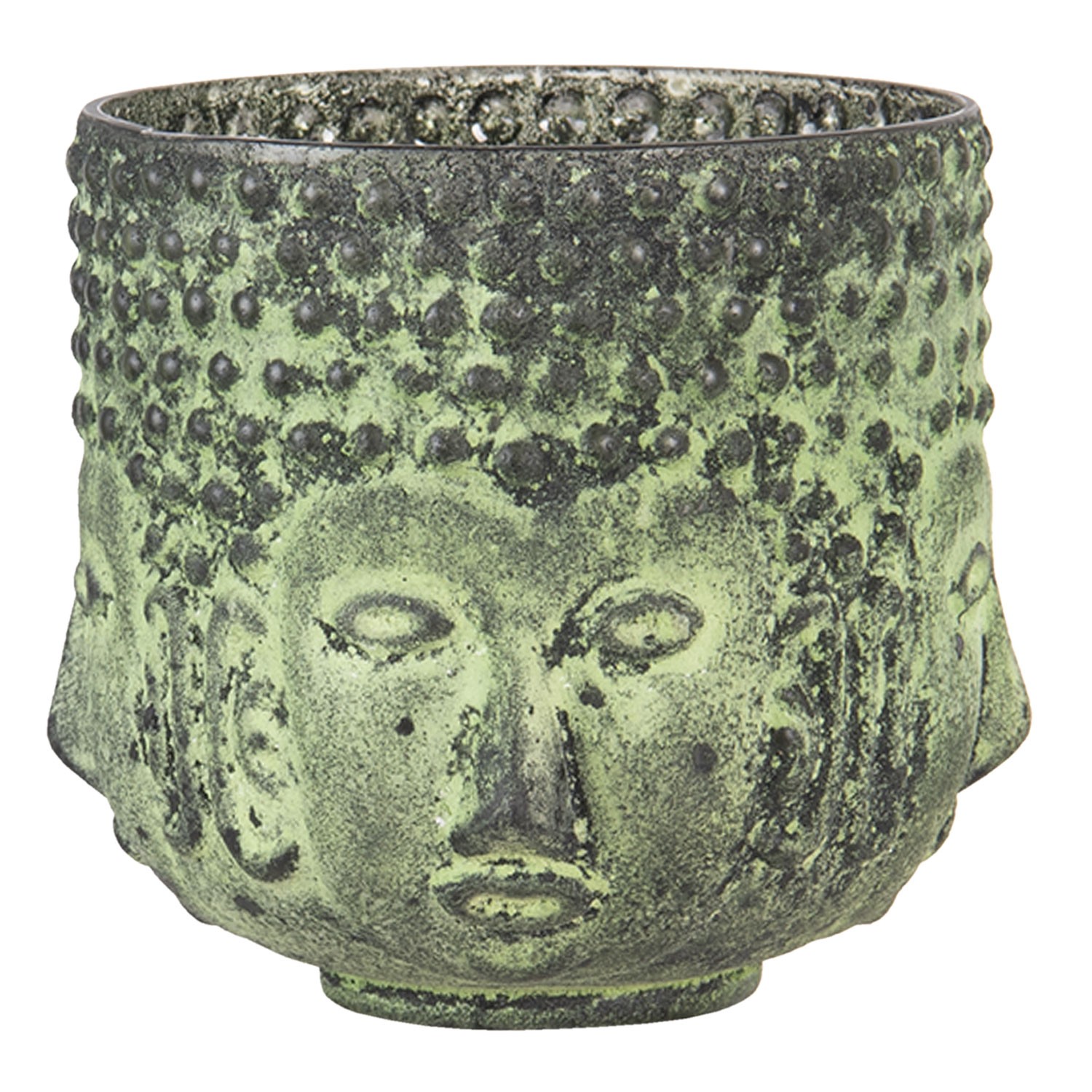 Skleněný svícen na čajovou svíčku s tématikou Buddhismu- Ø 10*10 cm