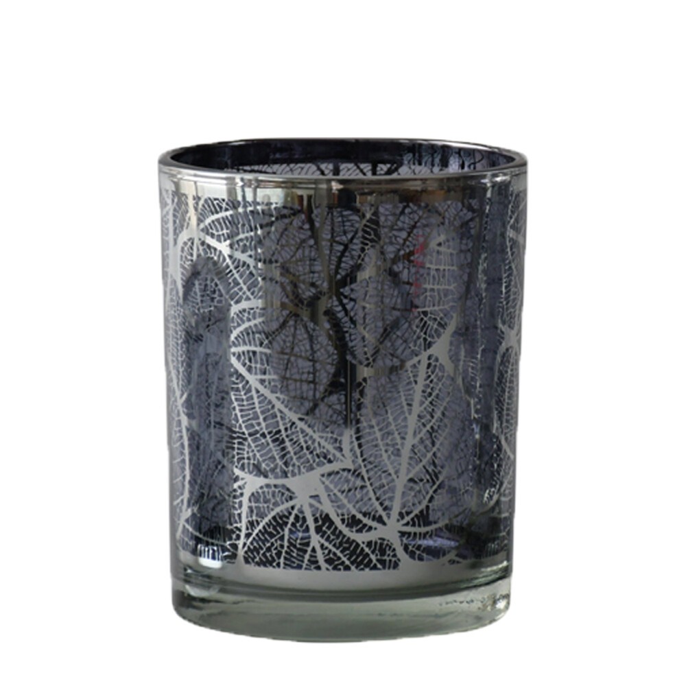 Tmavě šedý svícen Tree s motivem listů - 10*10*12,5cm