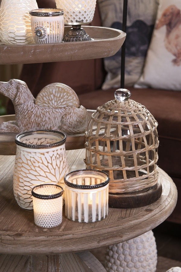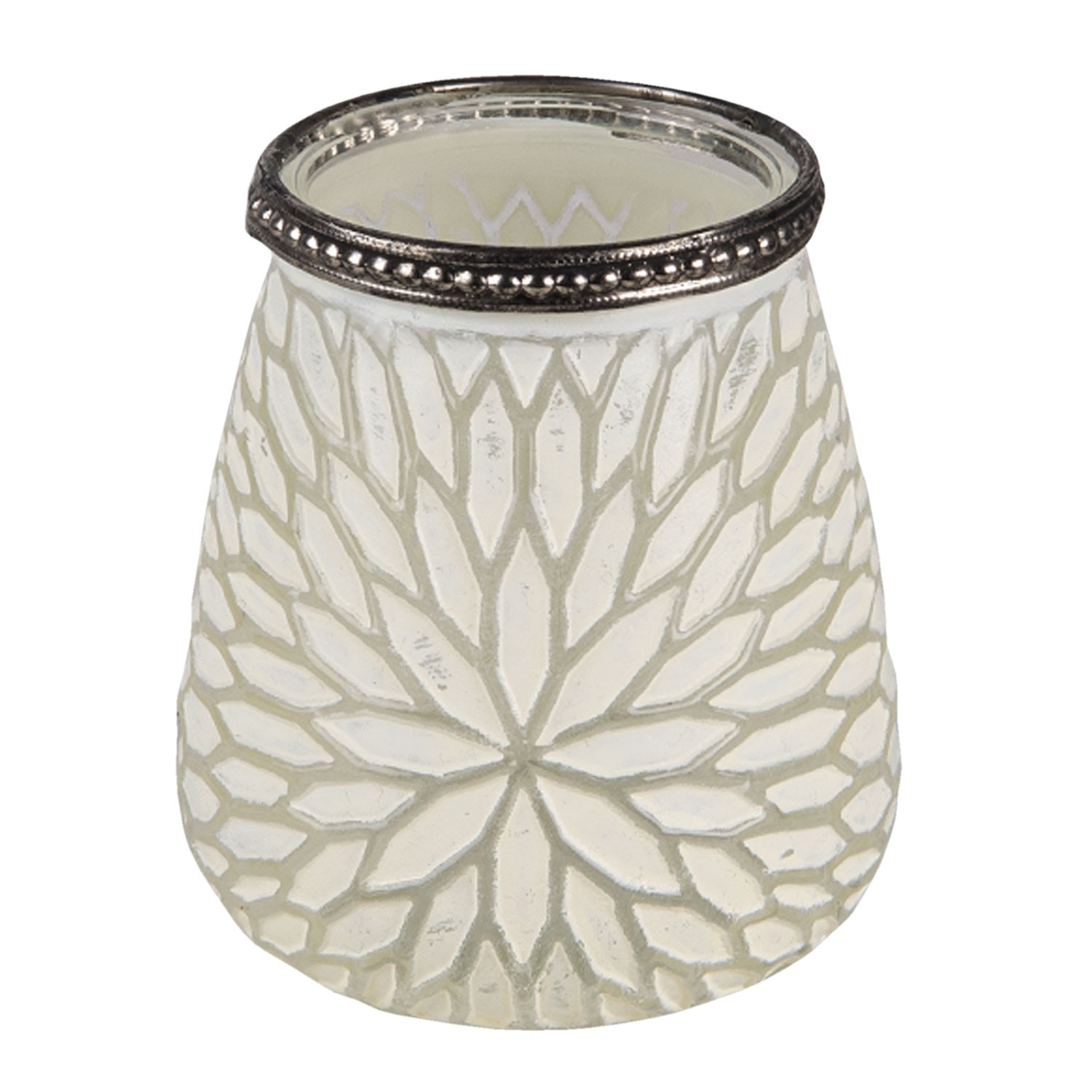 Bílý skleněný svícen Luz se zdobeným hrdlem M - Ø 9*10 cm
