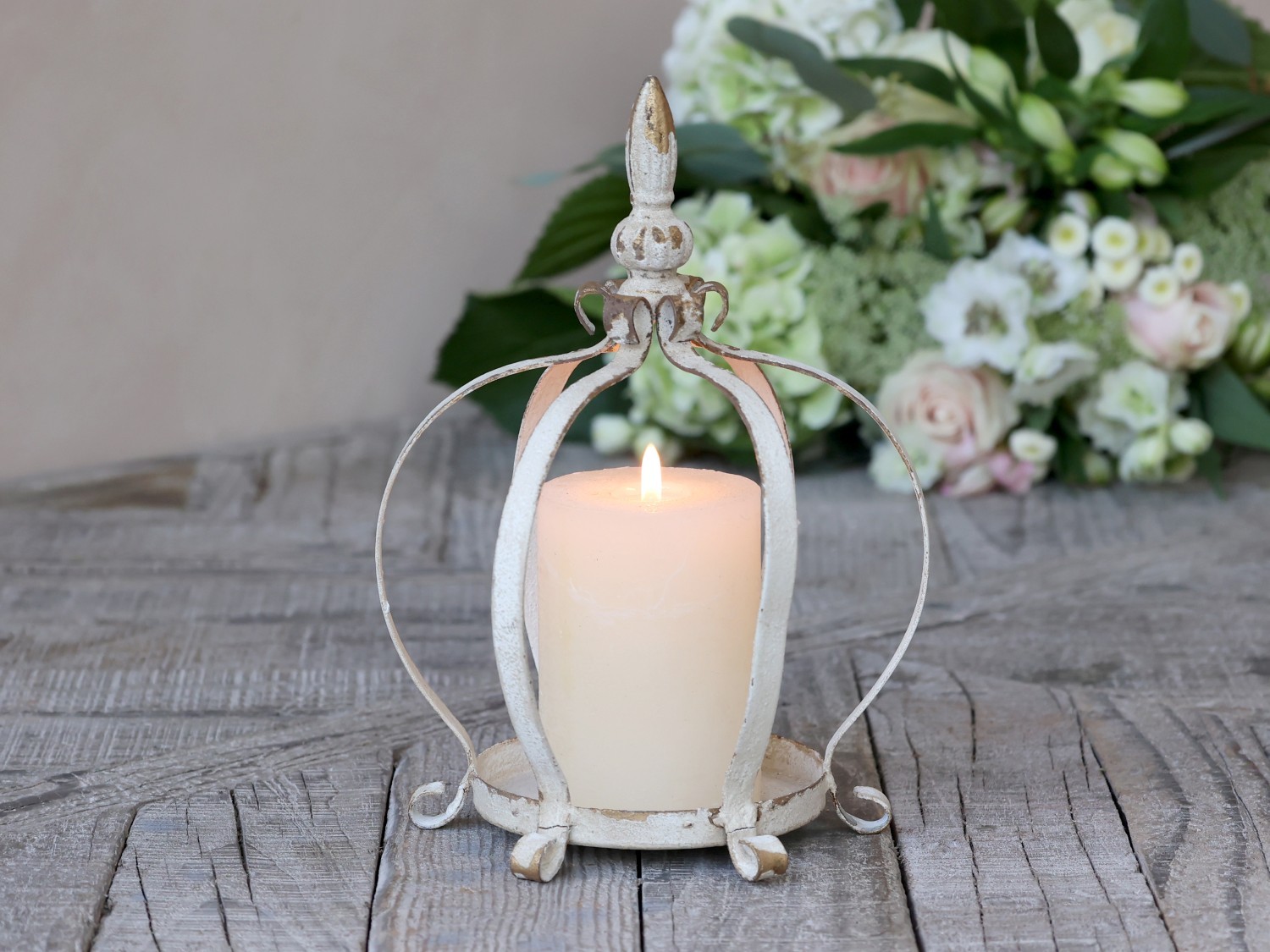 Krémový vintage kovový dekorativní svícen koruna Crow - Ø17*24cm