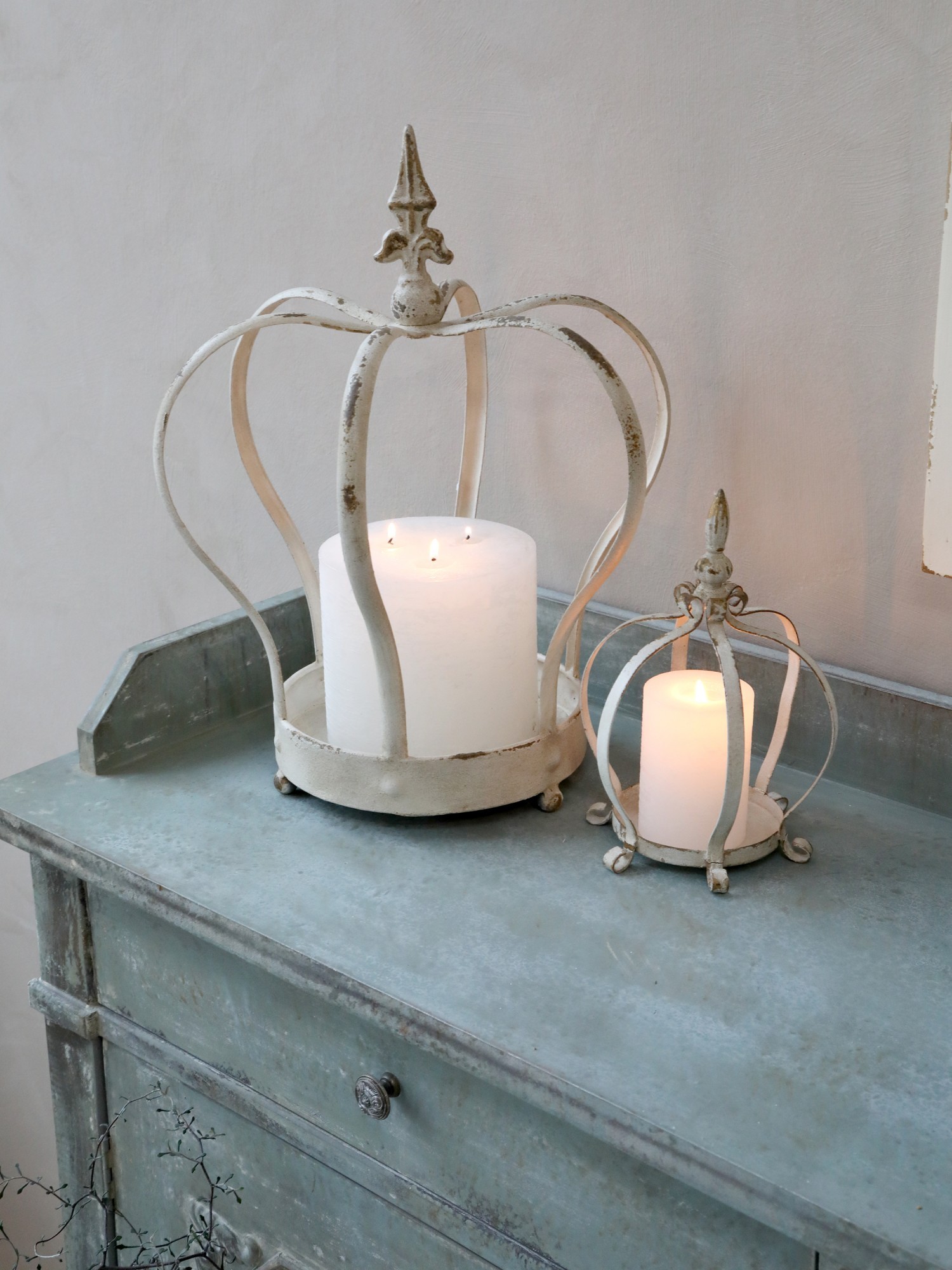 Krémová kovová dekorativní koruna jako svícen bude zajímavým dekorativním prvkem ve vašem interiéru.