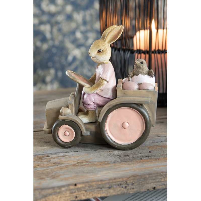 Dekorace králíček s kuřátkem na traktoru - 13*7*12 cm