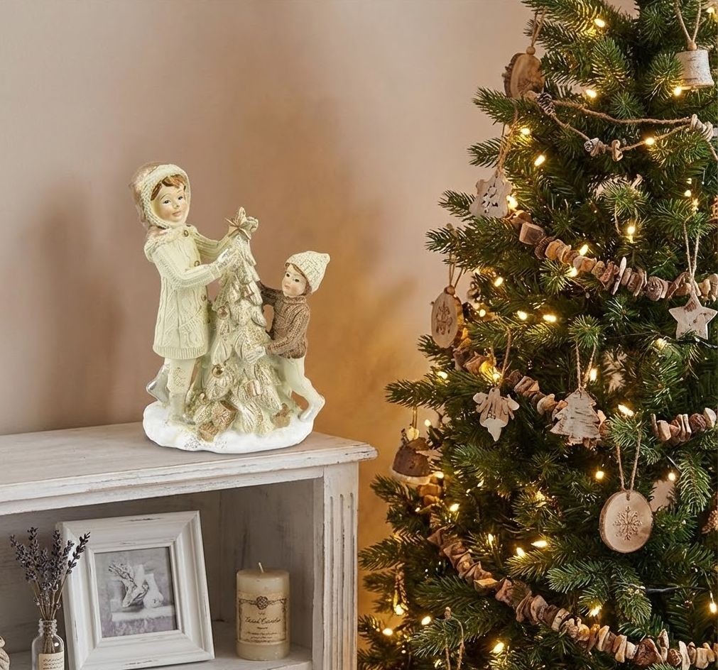 Vánoční dekorace děti u stromečku - 10*5*14 cm