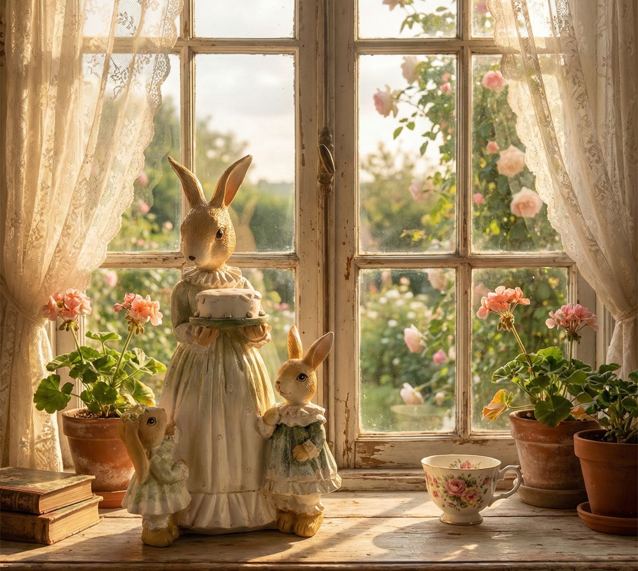 Dekorace králičí mamka s dortem a s malými králíčky - 13*10*21 cm