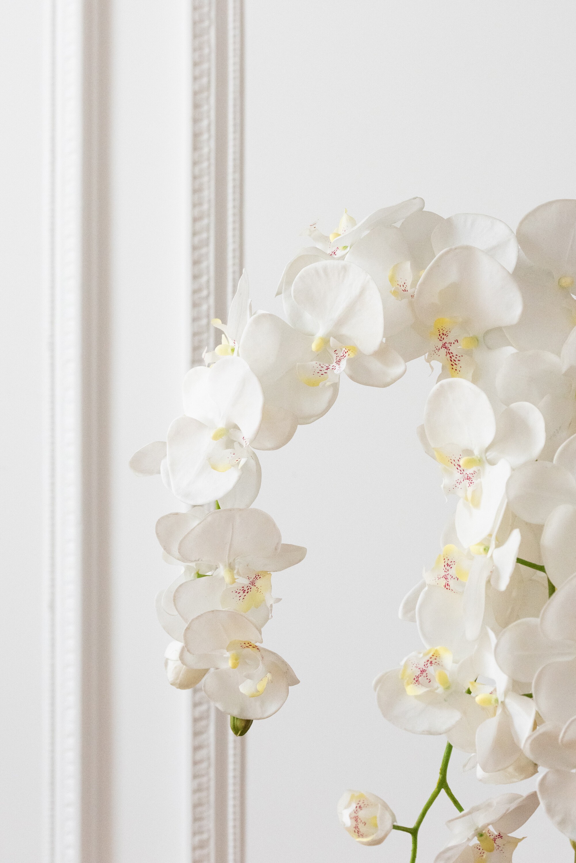 Tato umělá květina přináší do prostoru svěžest a eleganci, které nejsou k rozpoznání od skutečných orchidejí. Její živé zelené listy a jemné květy vytvářejí neodolatelný dojem života.