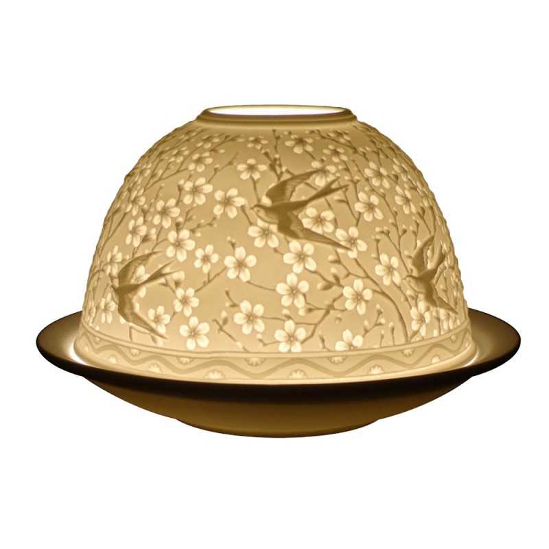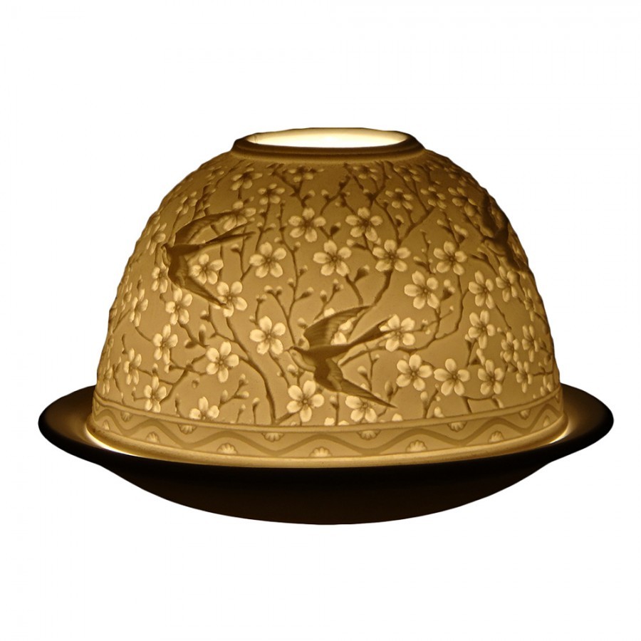 Porcelánový svícen na čajovou svíčku s vlaštovkami a květy Paollo - Ø 12 * 8 cm