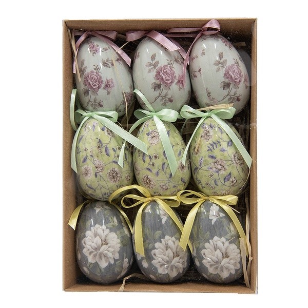 9ks dekorace závěsné vajíčko s květy Spring Egg - Ø 5*7cm