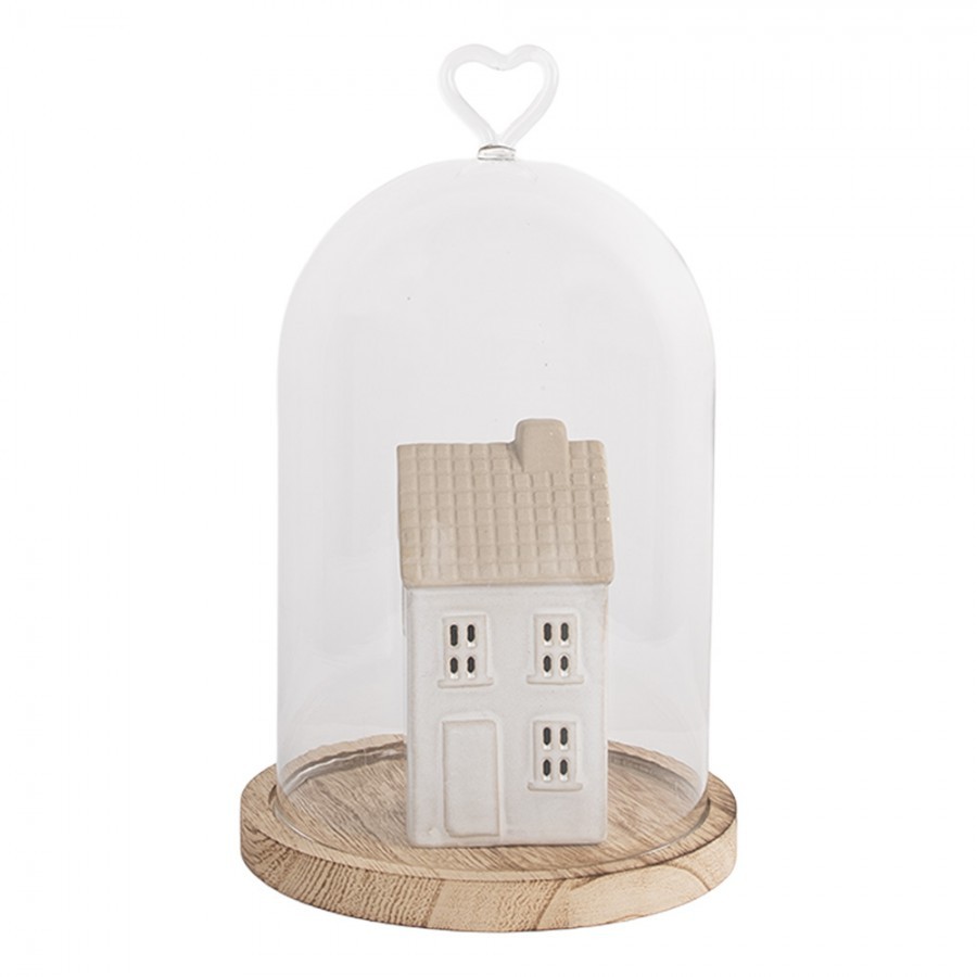 Skleněný poklop chrání obsah před prachem a zároveň umožňuje jeho stylové vystavení. Jedinečným detailem je úchytka ve tvaru srdíčka na vrcholu skleněného poklopu, která dodává celému kousku něžný a romantický nádech.