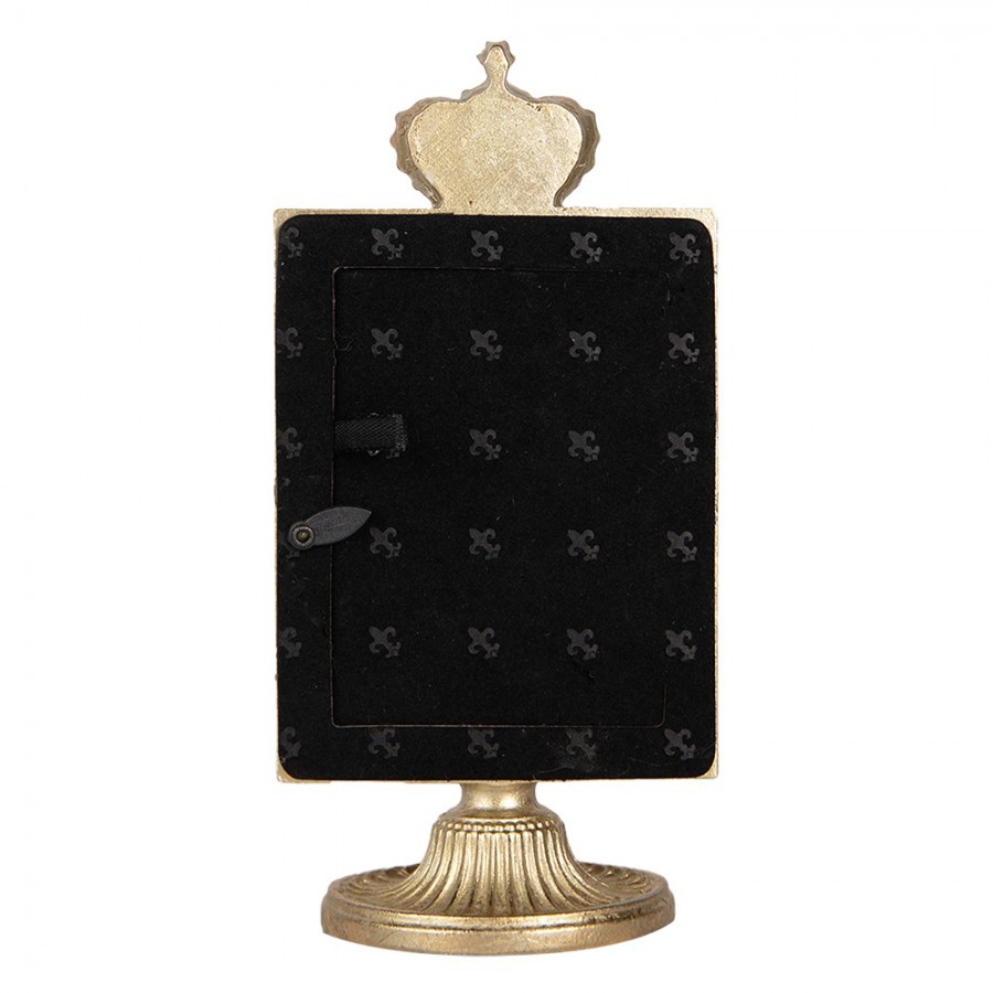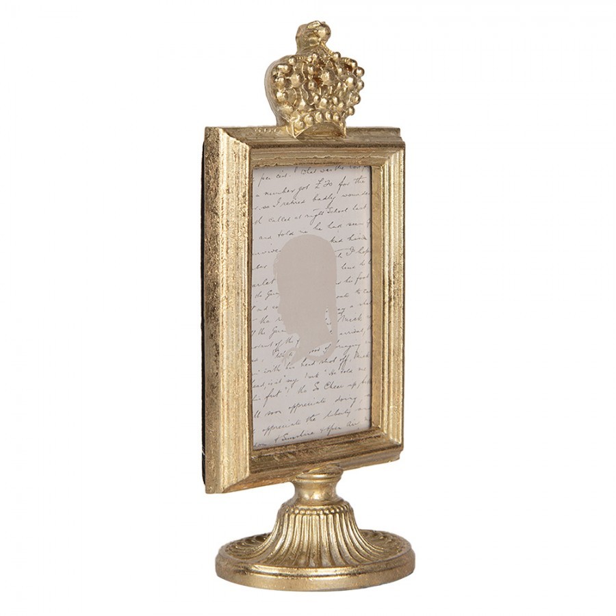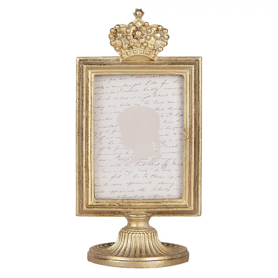 Objevte kouzlo elegance se zlatým antik fotorámečkem na noze zdobeným korunkou, který dokonale vynikne v každém interiéru. S rozměry 9*6*17 cm a možností umístění fotografie o velikosti 7*9 cm se tento fotorámeček skvěle hodí jako doplněk pro vaše oblíbené vzpomínky.