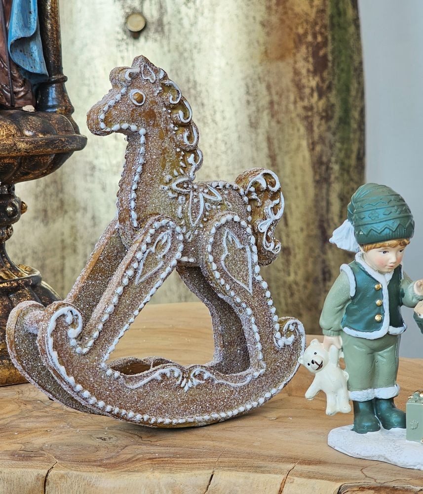 Vytvořte si kouzelnou atmosféru ve svém domově s hnědou perníkovou dekorací houpacího koníka se třpytkami. Tento jedinečný kousek měří 14 * 4 * 15 cm a okouzlí vás nejen svým tradičním designem, ale také jemnou hravostí, kterou přináší.