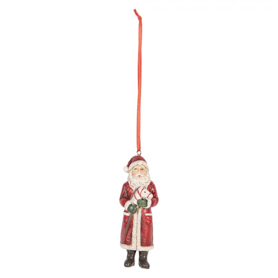 Dekorace závěsná ozdoba Santa Claus s koníkem – vánoční závěsná ozdoba