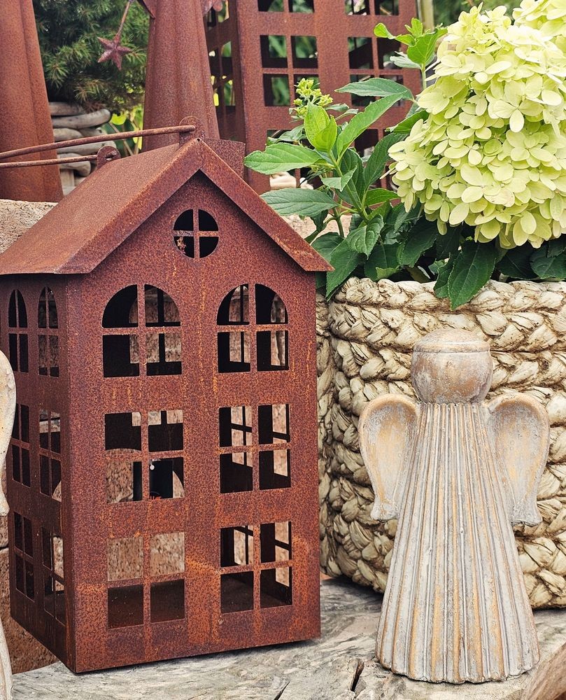 Připravte se na pořádnou dávku kouzelného světla! Rezavá antik plechová lucerna domek Amster vás okouzlí svým jedinečným vzhledem inspirovaným malebnými domečky Amsterdamu.