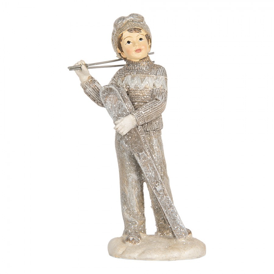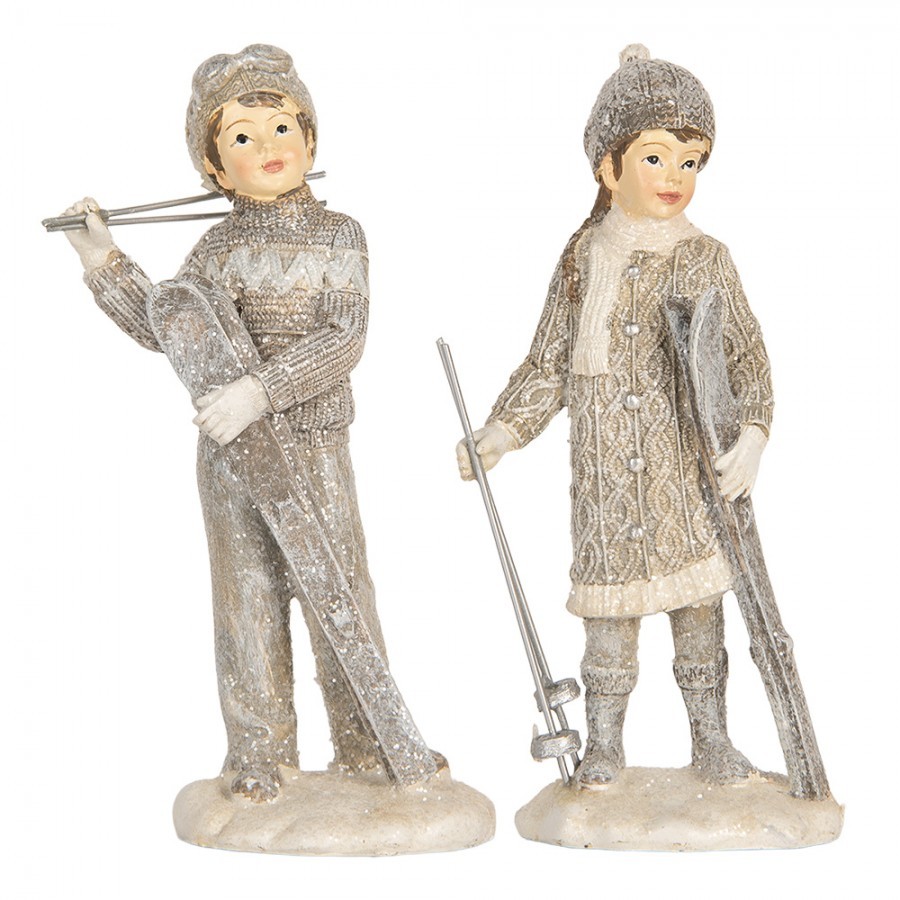 Objevte kouzlo elegance se šedou dekorací, která zobrazuje dvě postavy – dívku a chlapce, vyjadřující radost z lyžování. S rozměry 8 x 7 x 15 cm se tento jedinečný kousek stane skvělým doplňkem interiéru. Jeho jemné detaily a přesné zpracování zaručují, že se stane středem pozornosti, a to nejen díky svému atraktivnímu vzhledu, ale také díky krásnému ztvárnění postav s lyžemi.