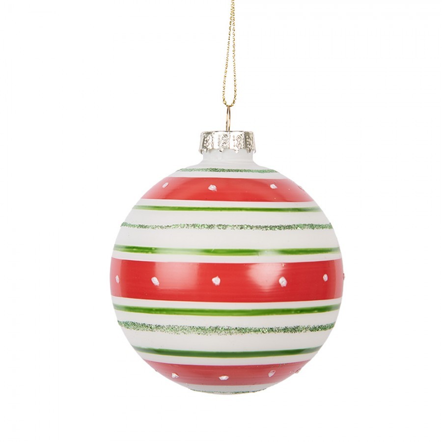 Ozdobte si vánoční stromeček touto krásnou bílo-červenou-zelenou vánoční ozdobou o rozměrech Ø 8x8 cm. Ideální pro slavnostní vzhled a snadno se kombinuje s dalšími dekoracemi.