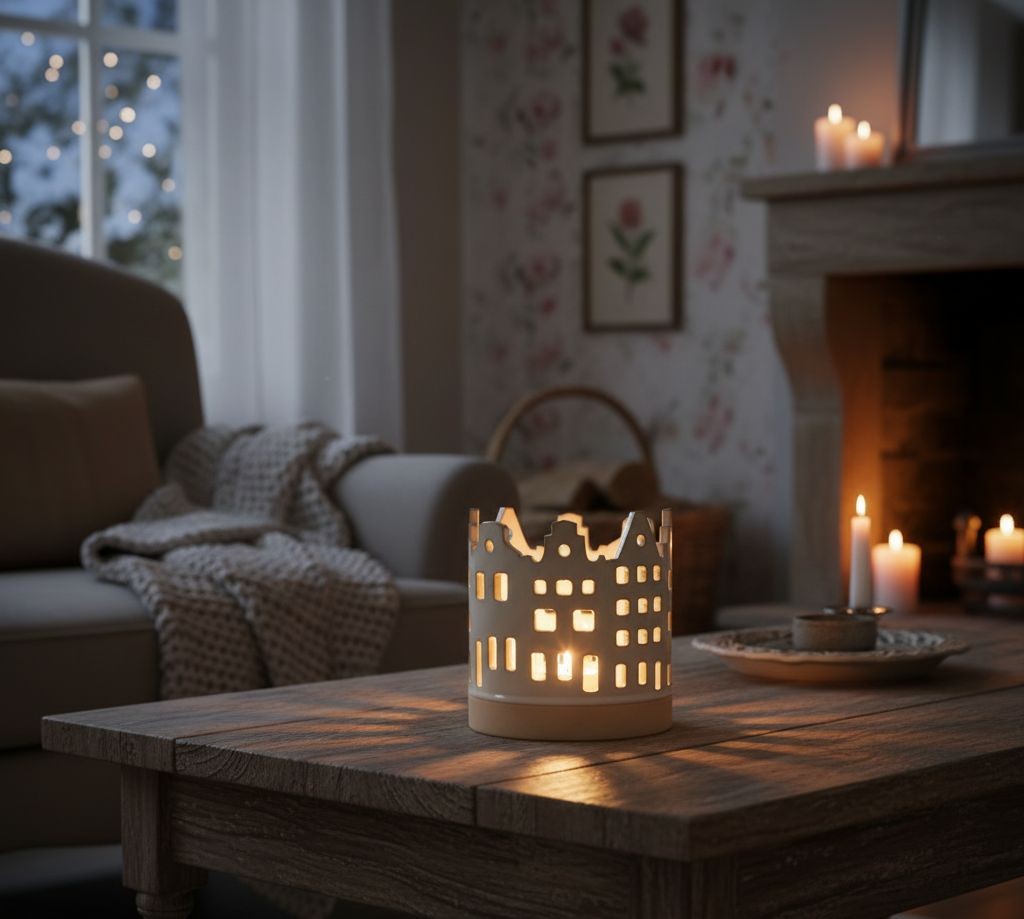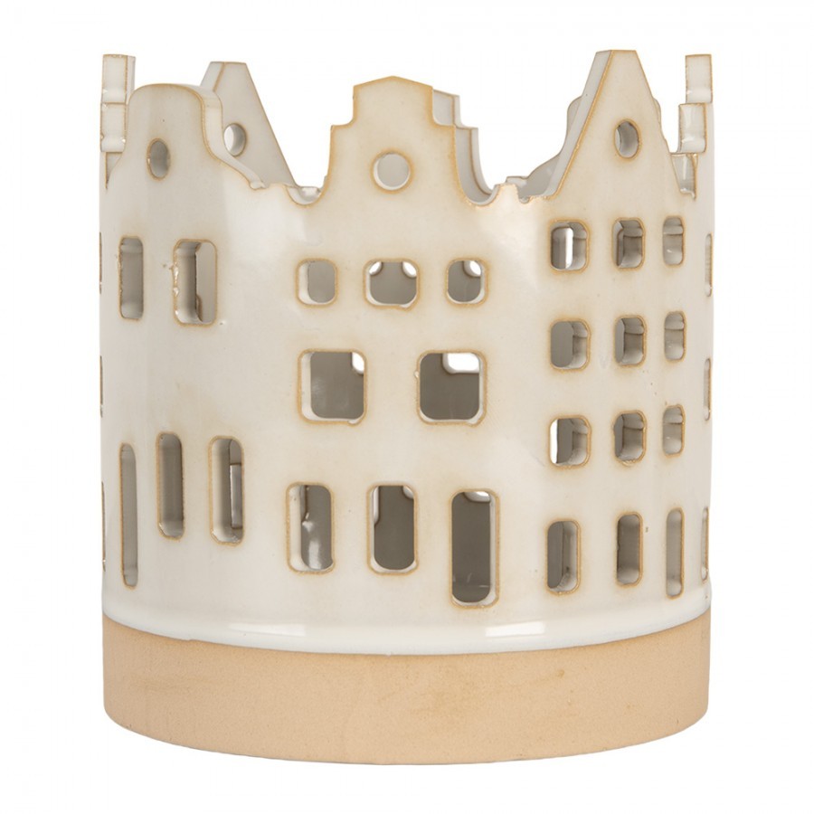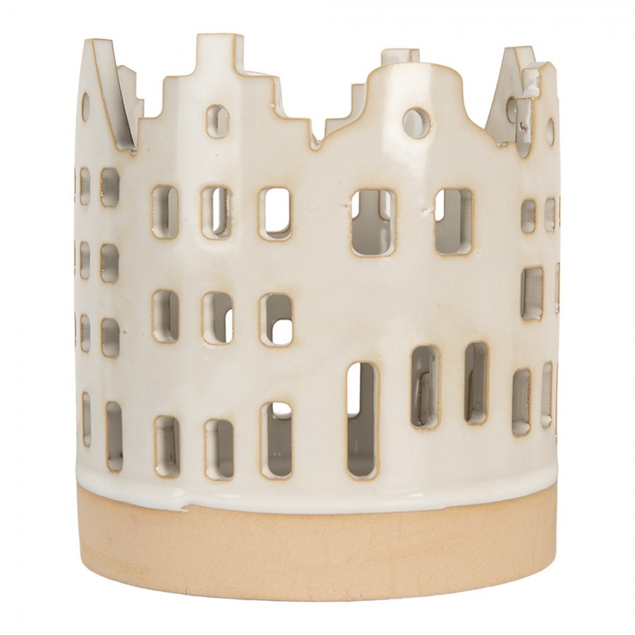 Nechte se unést jeho jedinečnou atmosférou a přidejte do svého domova kousek magie s naším béžovým svícnem na čajovou svíčku s domky!