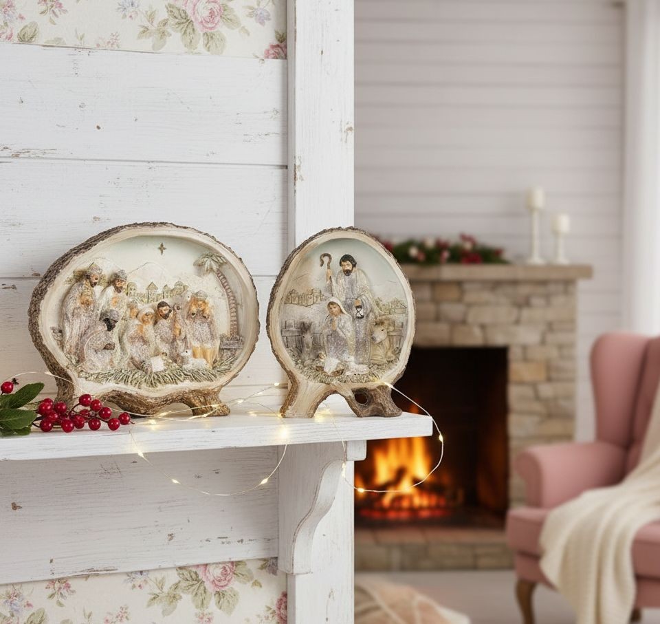 Tato dekorace zobrazuje tradiční scénu narození Ježíška, což z ní představuje skvělý dárek pro vaše blízké nebo stylovou ozdobu pro vaši domácnost.