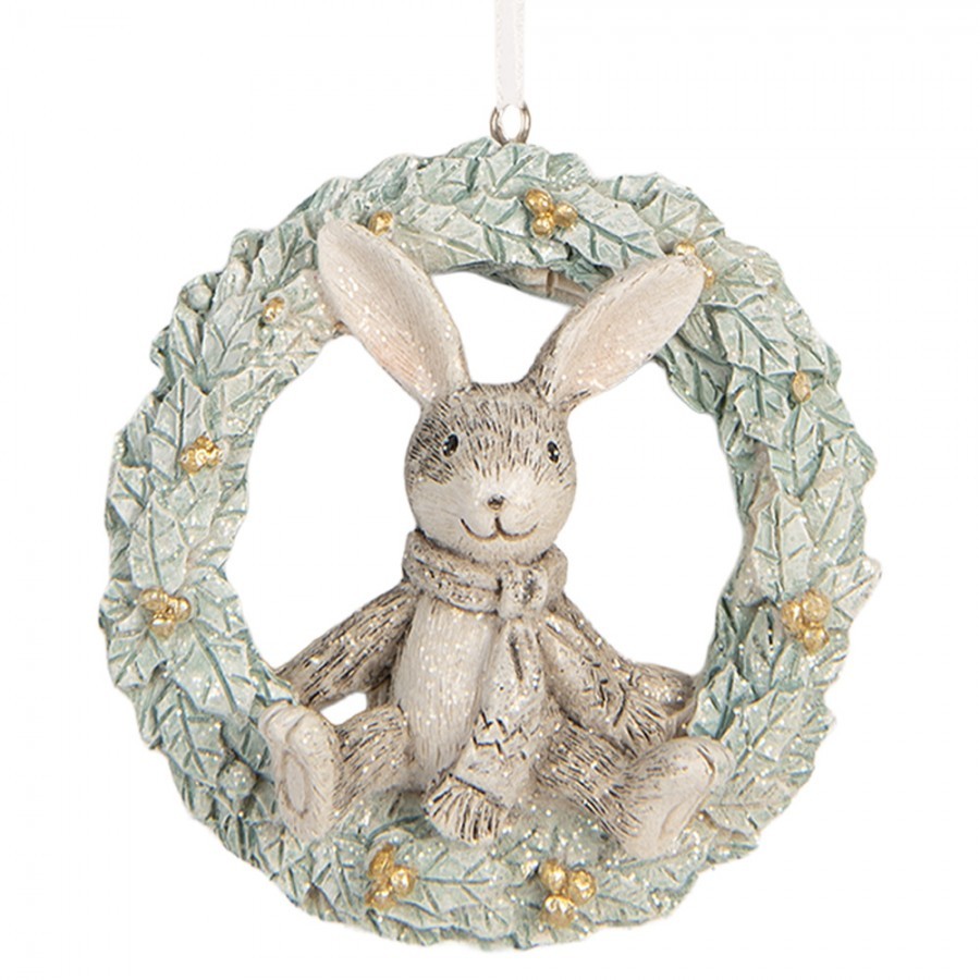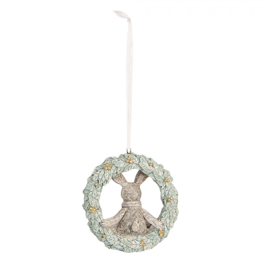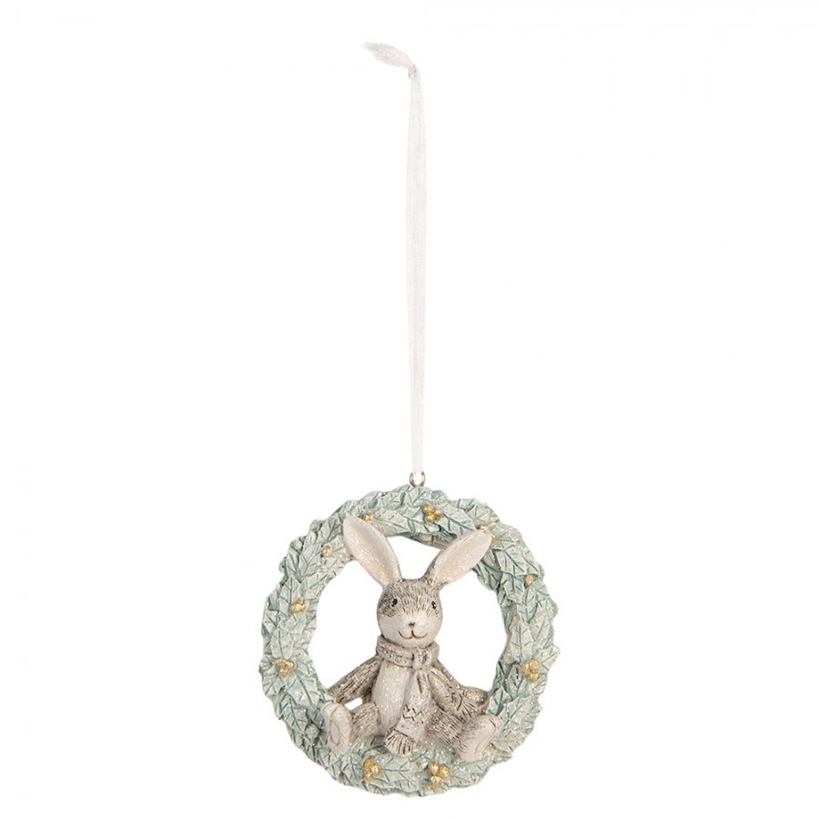Dekorace králíček sedící na věnci – závěsná dekorace