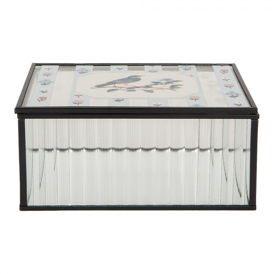 Je ideální pro uschování šperků, malých památečních předmětů nebo dokonce jako originální dárkové balení pro vaše blízké. Její skleněné víko je zdobeno nádhernými malovanými květinami a ptáčkem, které dodávají šperkovnici nádech romantiky a elegance.