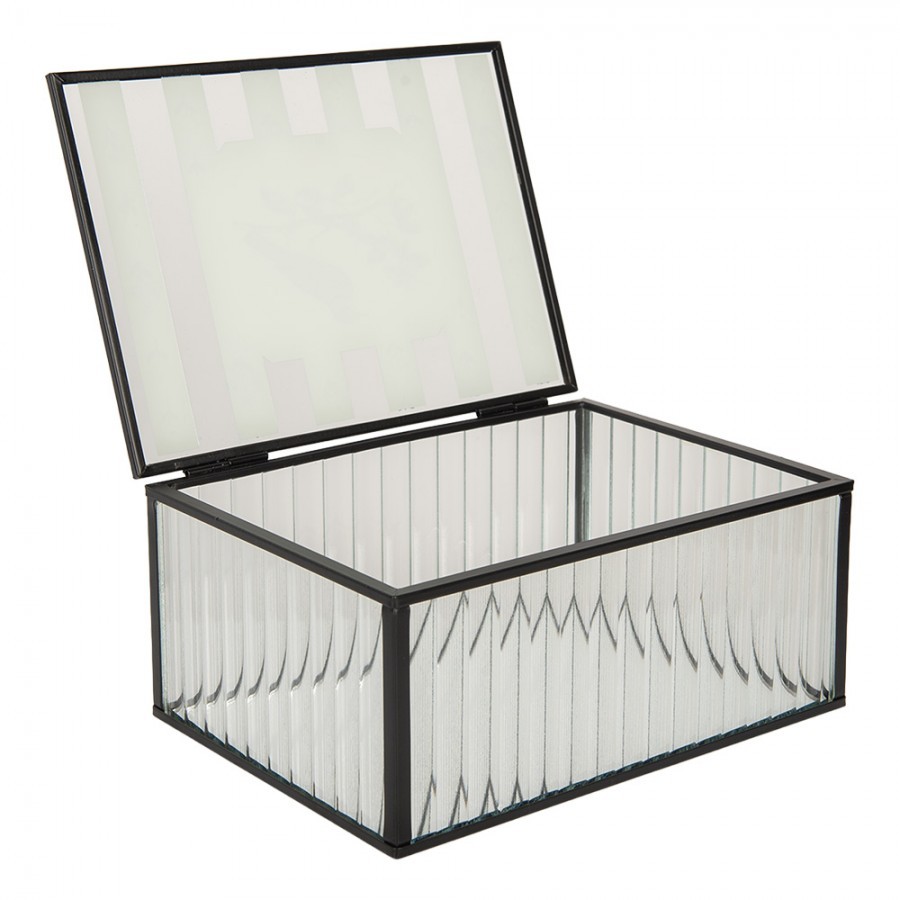 Objevte kouzlo elegance s černou antik kovovou skleněnou šperkovnicí, která měří 18*14*8 cm. Tato výjimečná šperkovnice není jen praktickým úložným prostorem pro vaše drobnosti, ale i stylovým doplňkem do každého interiéru.