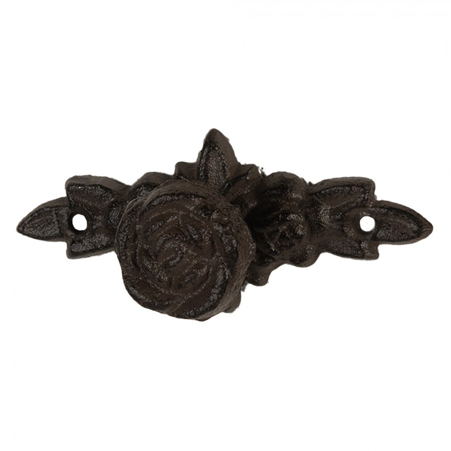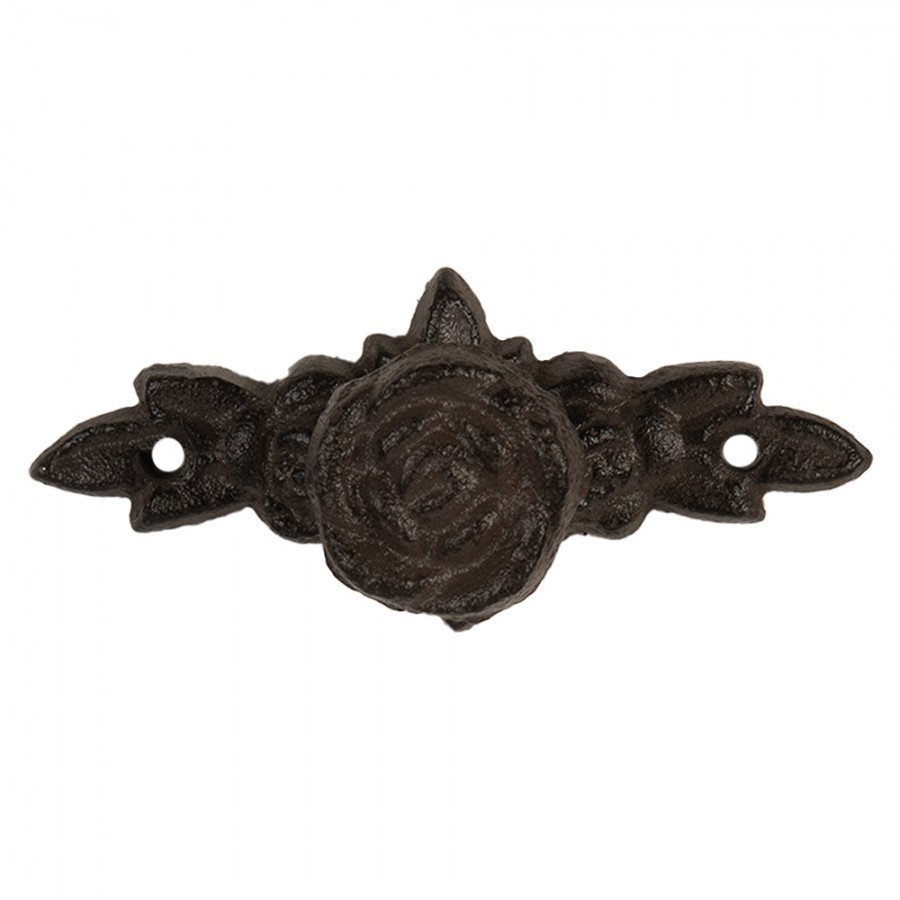 Vdechněte svému nábytku nový život s touto romantickou litinovou úchytkou. Dominantním prvkem je detailně propracovaný reliéf rozkvetlé růže, doplněný o dekorativní listy po stranách. Díky svému tmavě hnědému provedení s jemnou antik patinou je ideálním doplňkem pro renovaci nábytku ve stylu Vintage, Rustikál nebo Shabby Chic.