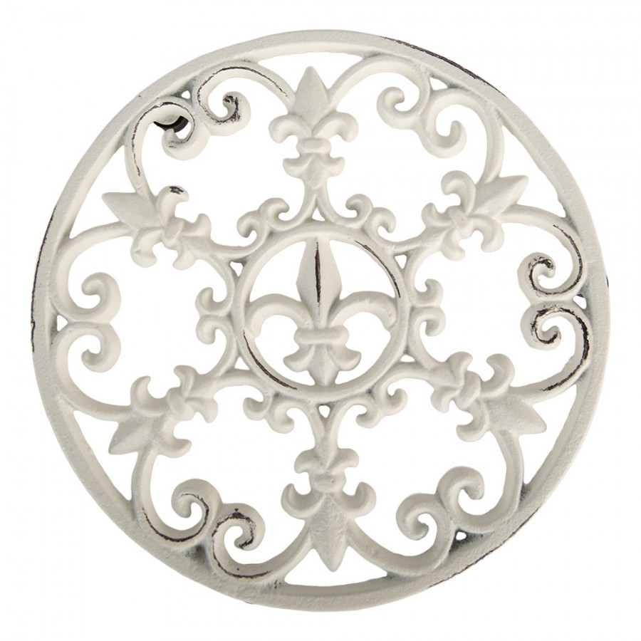 Chraňte svůj jídelní stůl nebo kuchyňskou linku se stylem. Tato masivní litinová podložka s elegantním motivem heraldické lilie (Fleur-de-lis) kombinuje vysokou funkčnost s jemným estetickým vzhledem. Díky svému krémovému odstínu s antik patinou se stane nepřehlédnutelným doplňkem interiérů laděných do stylu Provence, Shabby Chic nebo Vintage.