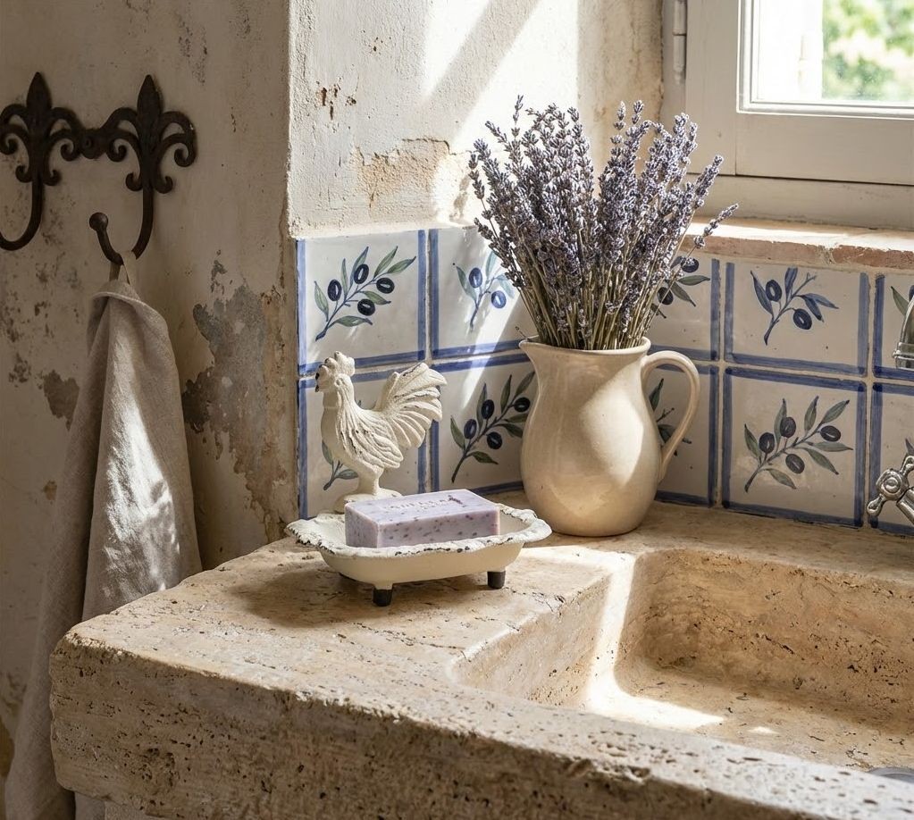 Tip designéra: Mýdlenka nejlépe vynikne na dřevěných deskách, kamenných umyvadlech nebo v kombinaci s dalšími litinovými doplňky v interiéru laděném do stylu Provence.