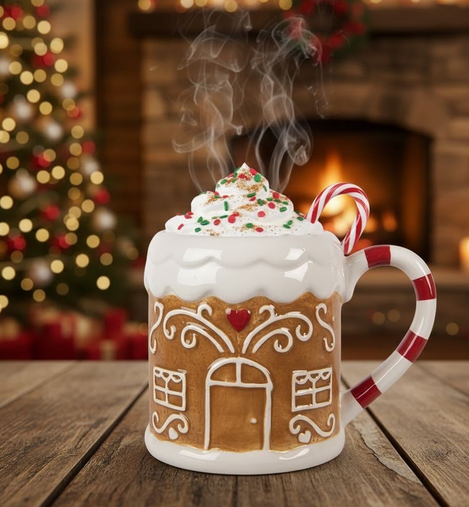 Objevte kouzlo zimních svátků s hnědým keramickým hrnkem ve tvaru perníkové chaloupky, který se stane neodmyslitelnou součástí vašeho každodenního rituálu.