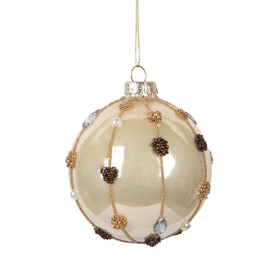 Obohaťte svou vánoční výzdobu s touto elegantní béžovou skleněnou vánoční ozdobou v podobě koule, která měří 8 cm v průměru. Její jemný design je zdobený kvalitními korálky, které dodávají nádech luxusu a šarmu.
