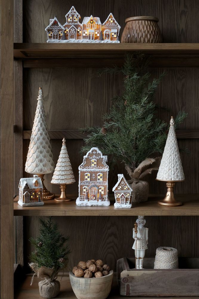 Tento kouzelný kousek, vyrobený s láskou a precizností, je pokrytý detailními perníkovými motivy a ozdobenými roztomilými světýlky, které poskytují příjemnou atmosféru a dodávají vaší domácnosti sváteční nádech.