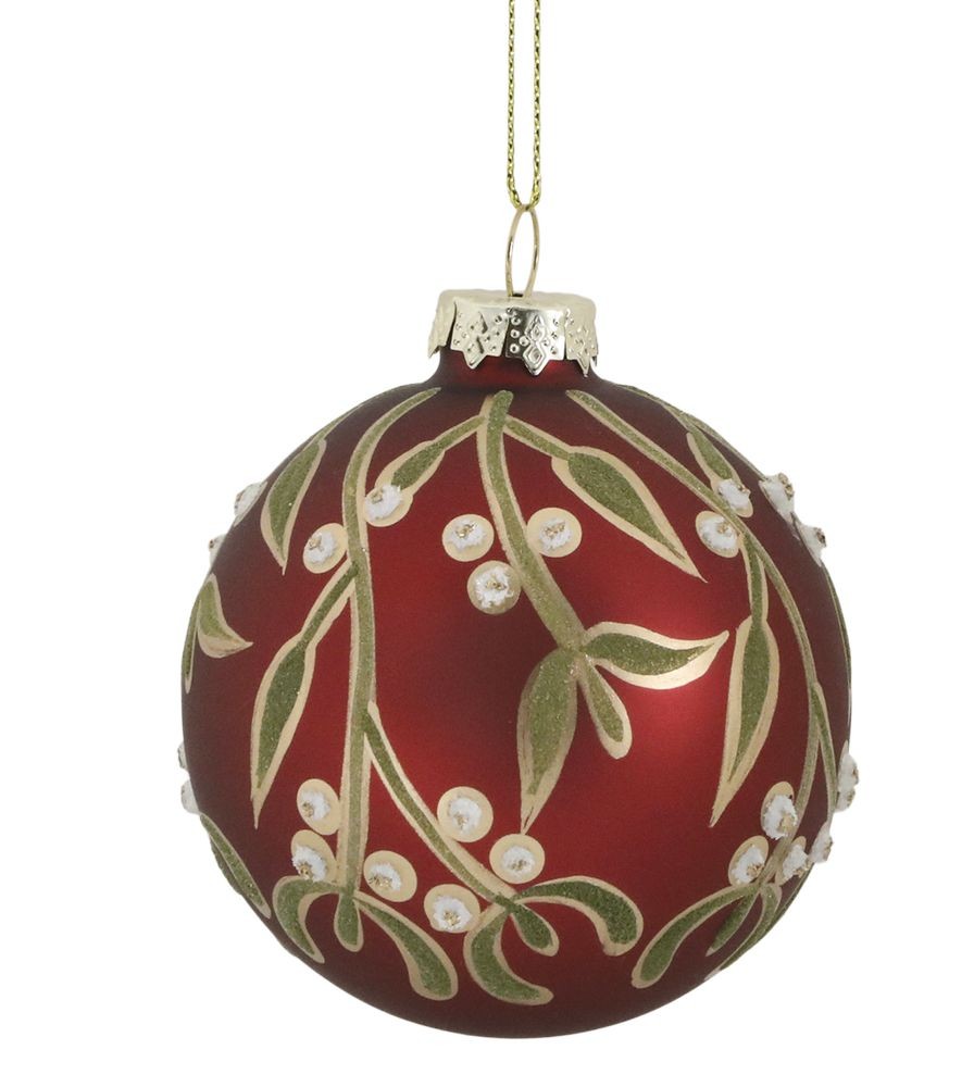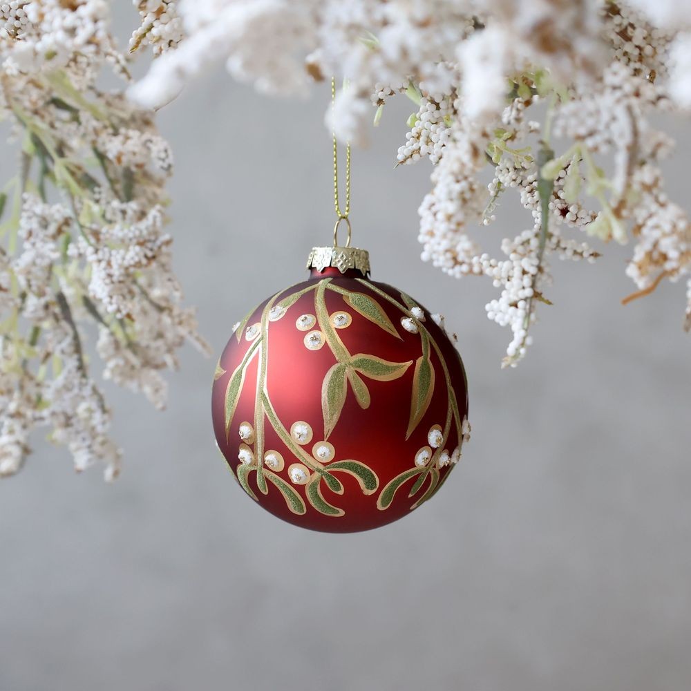 Vyzdobte vánoční stromeček nebo interiér touto jedinečnou ozdobou, která je zdobena jemným motivem jmelí, symbolizujícím a štěstí.