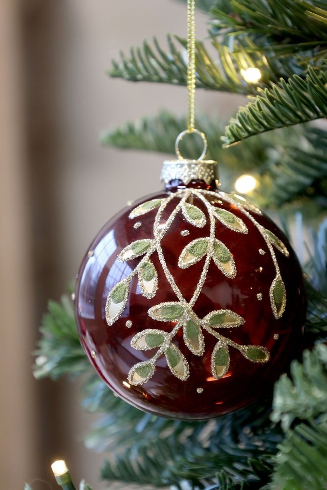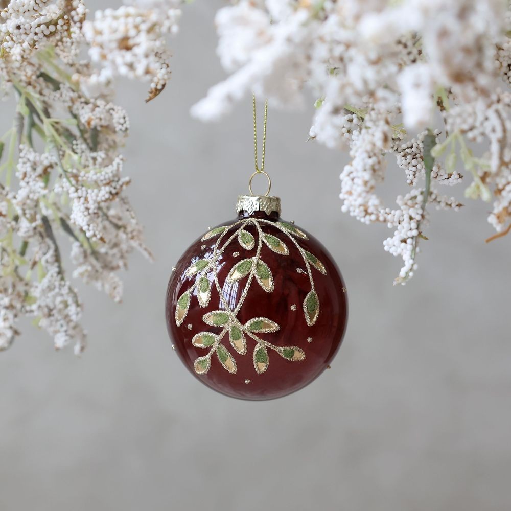 Vyzdobte vánoční stromeček nebo interiér touto jedinečnou ozdobou, která je zdobena jemným motivem listů, symbolizujícím štěstí.
