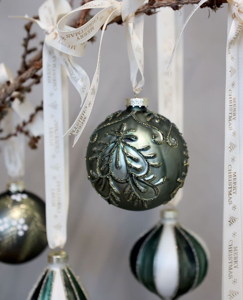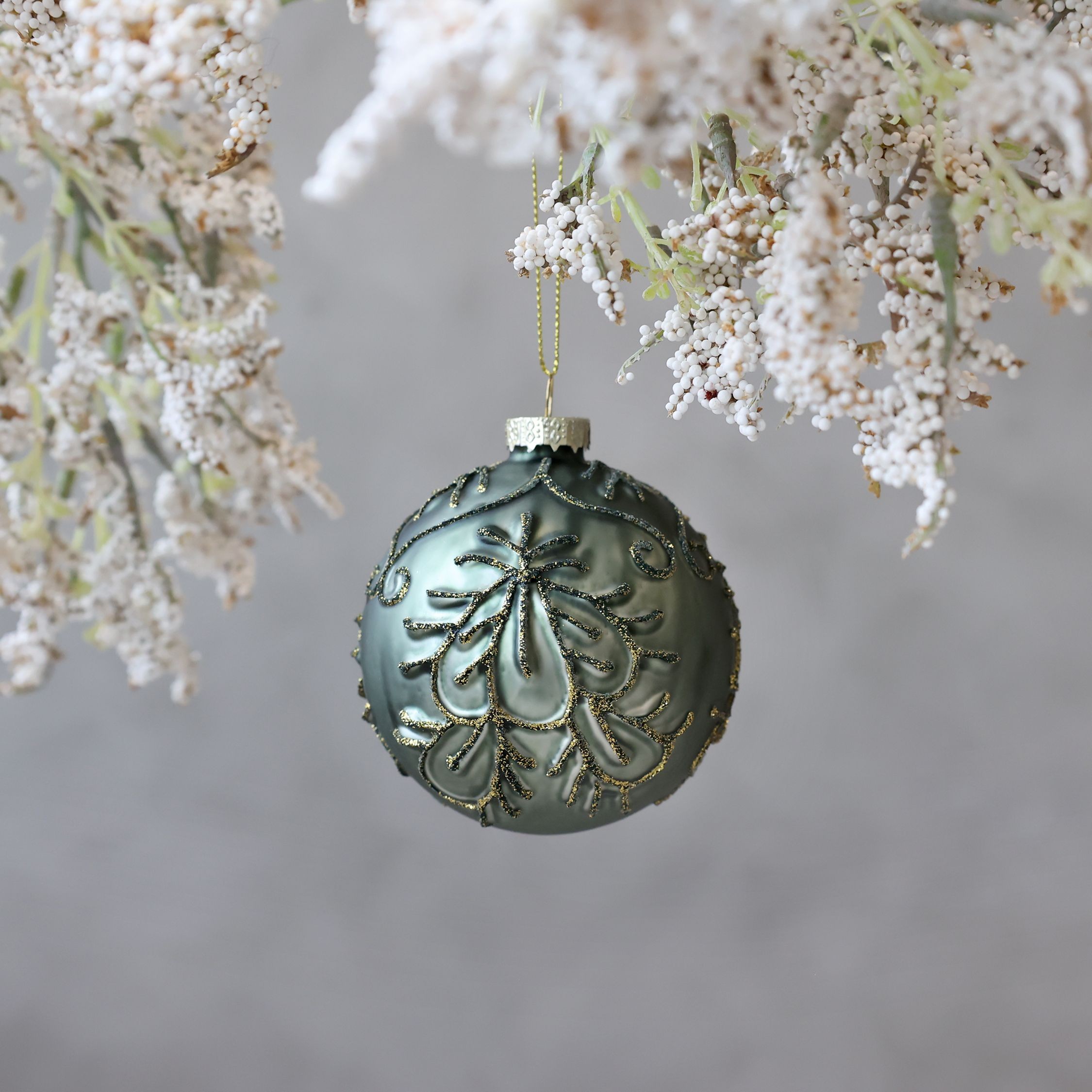 Objevte kouzlo Vánoc s ručně malovanou zelenou skleněnou ozdobou ve tvaru koule, která má průměr 8 cm. Tato elegantní ozdoba v odstínu antické zelené přináší do vašeho domova atmosféru tepla a tradičních svátků.