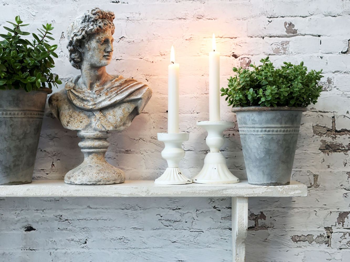 S rozměry Ø 9*11 cm je tento svícen ideální doplněk pro romantickou večeři nebo klidné chvíle strávené s knihou. Jeho vintage design a jemné detaily přitahují pozornost a příjemnou atmosféru, která vás přenese do minulosti a naplní váš prostor teplým světlem.