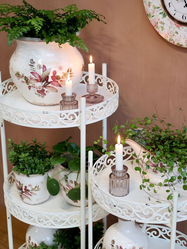S rozměry Ø 35*86 cm je dostatečně prostorný, aby na něj mohly být umístěny drobné dekorace, svíčky či květiny. Jeho kovová konstrukce zaručuje pevnost a trvanlivost.