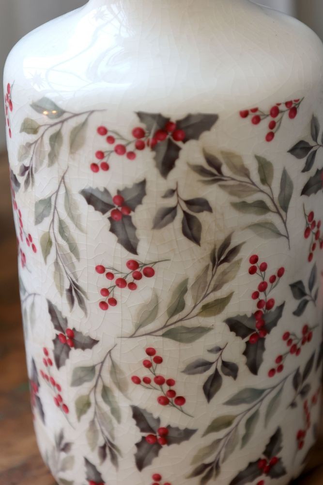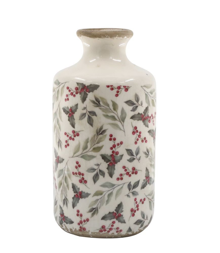 Objevte kouzlo tradičního designu s béžovou antik keramickou vázou, která je zdobená elegantní cesmínou.
