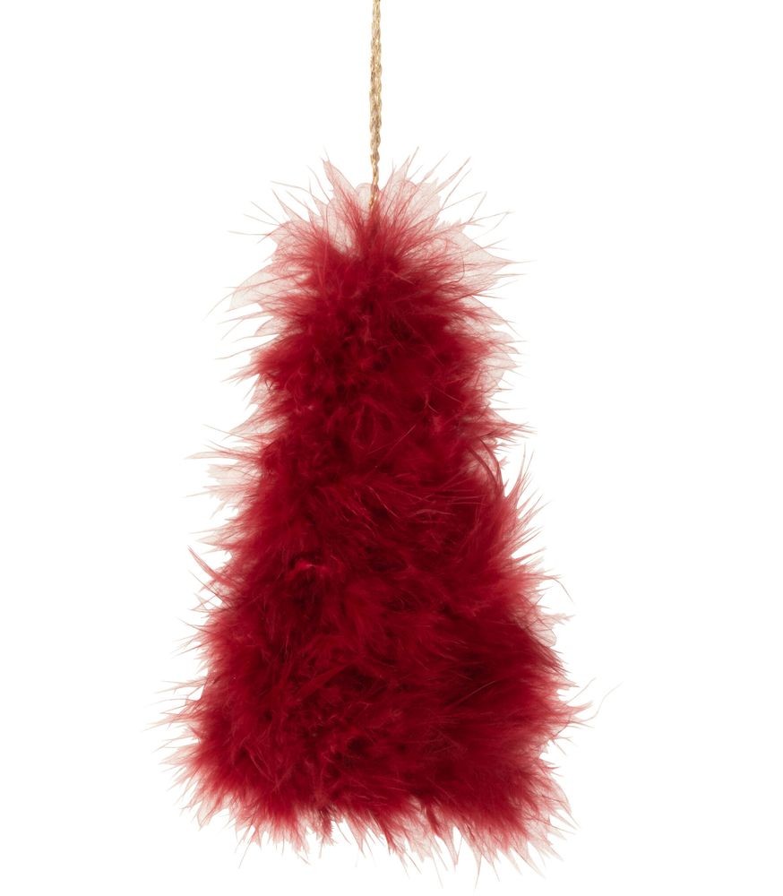 Připravte se na kouzlo Vánoc s krásnou vínovou vánoční ozdobou ve tvaru stromku, zdobenou jemnými peříčky.