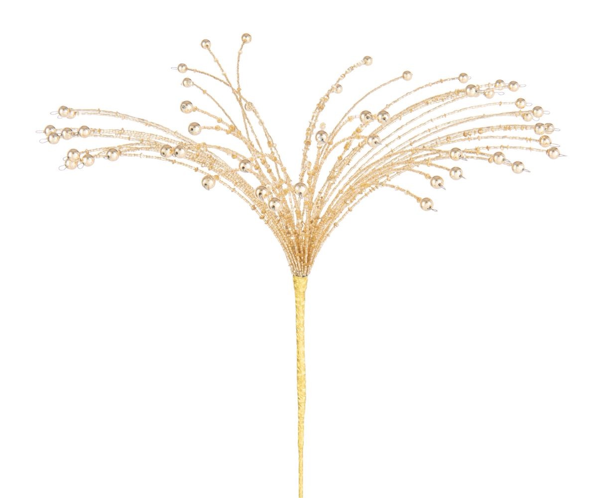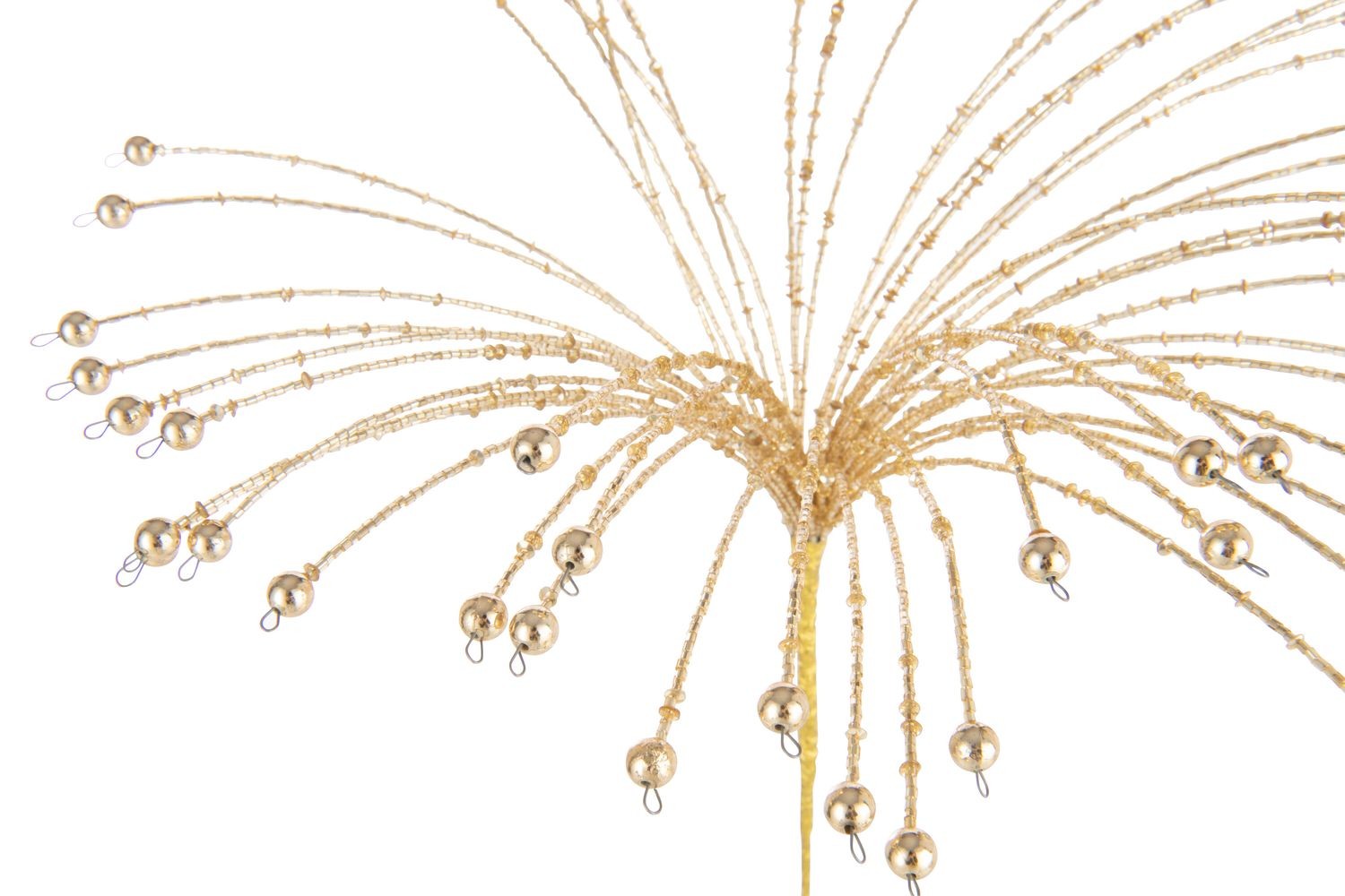 Její zlatá barva přidává nádech luxusu a vytváří v prostoru příjemnou atmosféru, zatímco jemné korálky na větvičce dodávají nádech hravosti a eleganci.