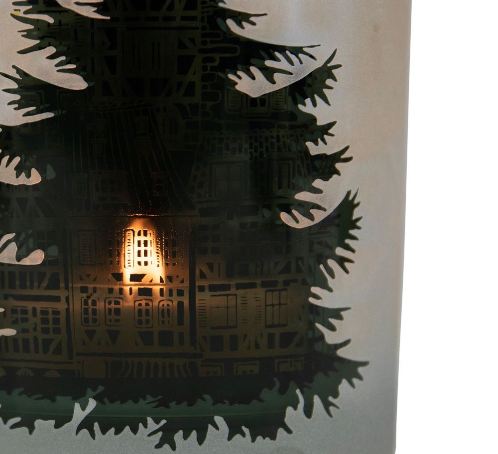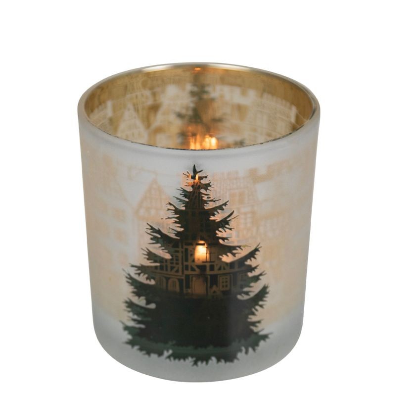 Objevte kouzlo zimní atmosféry s černozlatým skleněným svícnem, který přináší do vašeho domova jedinečný dotek elegance. Tento krásný svícen, s průměrem 7 cm a výškou 8 cm, je zdobený uvnitř malebnými domečky a stromky, které vytvářejí útulnou a pohádkovou atmosféru.