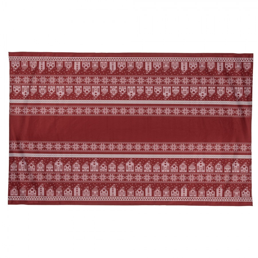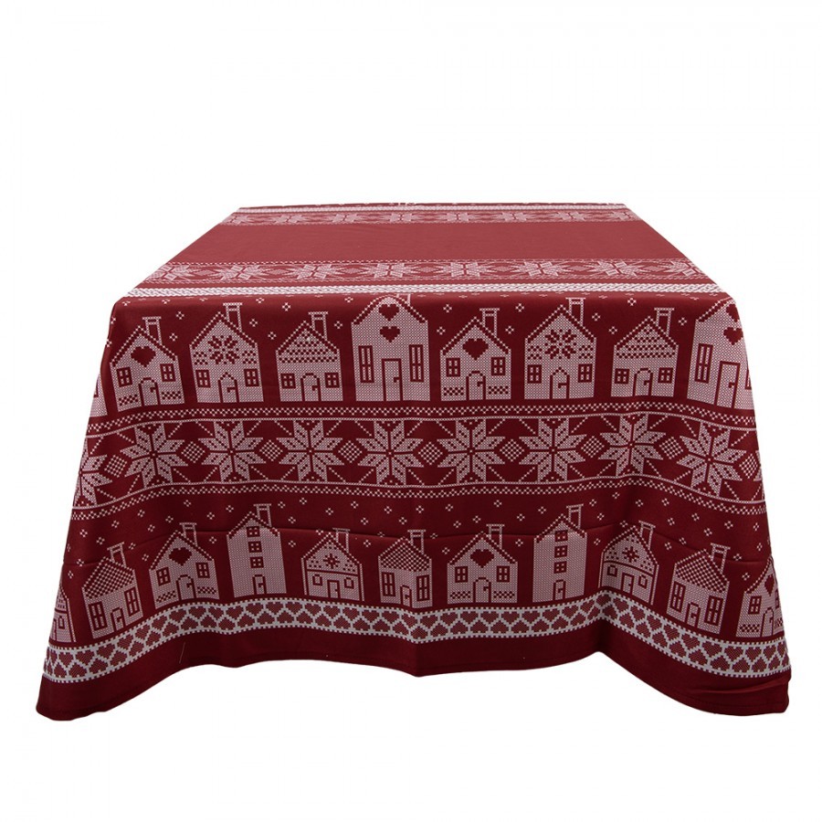 Vytvořte si kouzelnou zimní atmosféru s tmavě červeným zimním ubrusem o rozměrech 140 x 220 cm. Tento ubrus, zdobený okouzlujícími motivy domků a vloček, přináší do vašeho domova pocit tepla a pohody, ideální pro rodinné setkání při svátečním stole.
